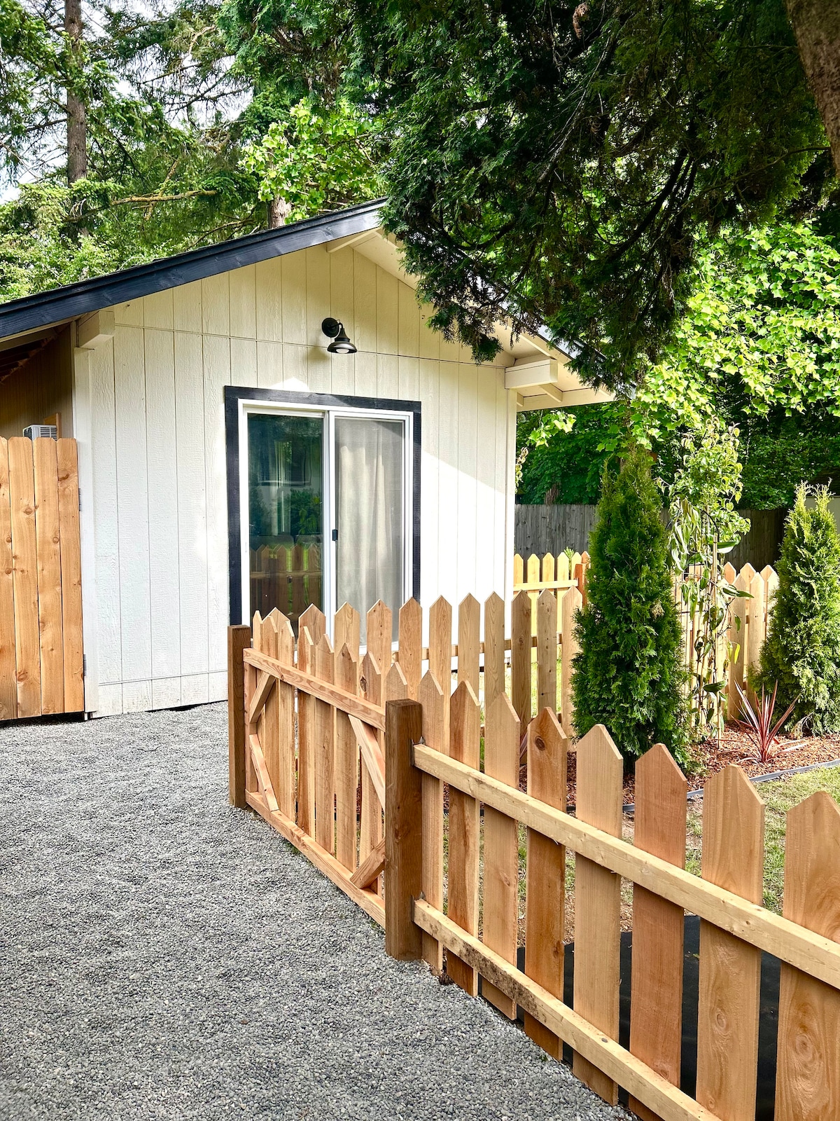 Teach aíochta scoite, an - bheag (300 troigh cearnach) i gcomharsanacht Oirdheisceart Portland in Woodstock. Go leor bialanna insiúlta chomh maith le Séasúir Nua agus Safeway laistigh de shiúlóid 5 nóiméad. In aice le Coláiste Reed, Sráidbhaile Woodstock, Conair Springwater, Comharsanachtaí Oirdheisceart Portland, Iompar Poiblí. Taitneoidh an suíomh, an spás lasmuigh, agus an t - atmaisféar go mór leat. Go maith do lánúineacha, d'eachtránaithe aonair agus do thaistealaithe gnó. Teilifís (Netflix cumasaithe!), A/C (míonna an tsamhraidh), teas, caife, cuisneoir/reoiteoir.