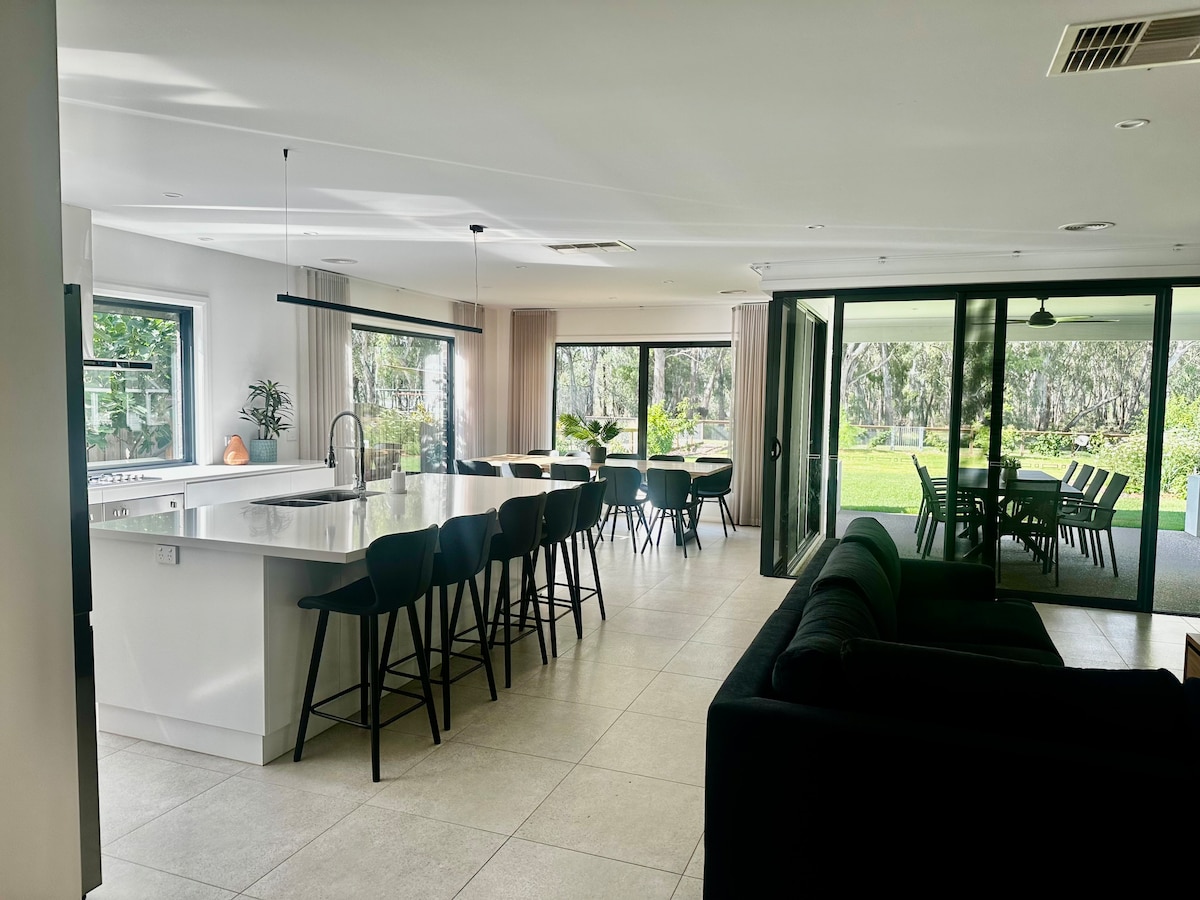Tá an teach nua - thógtha nua - aimseartha seo suite níos lú ná 100 méadar ón abhainn, 200 méadar ó Bundalong Tavern agus tiomáint áisiúil 2 nóiméad chuig rampa an bháid. Teach nua - aimseartha 5 sheomra leapa atá feistithe go hiomlán in éineacht le fearais úrnua agus téamh /fuarú cuisnithe duchtaithe a sholáthraíonn an suíomh agus an compord foirfe do d'fhanacht. Tá Wi - Fi, línéadach agus saoráidí áirithe ar fáil mar áis duit. Soláthraíonn an réadmhaoin fhálaithe/ gheataithe seo spás fairsing freisin do pháirceáil iomadúla báid agus leantóra.