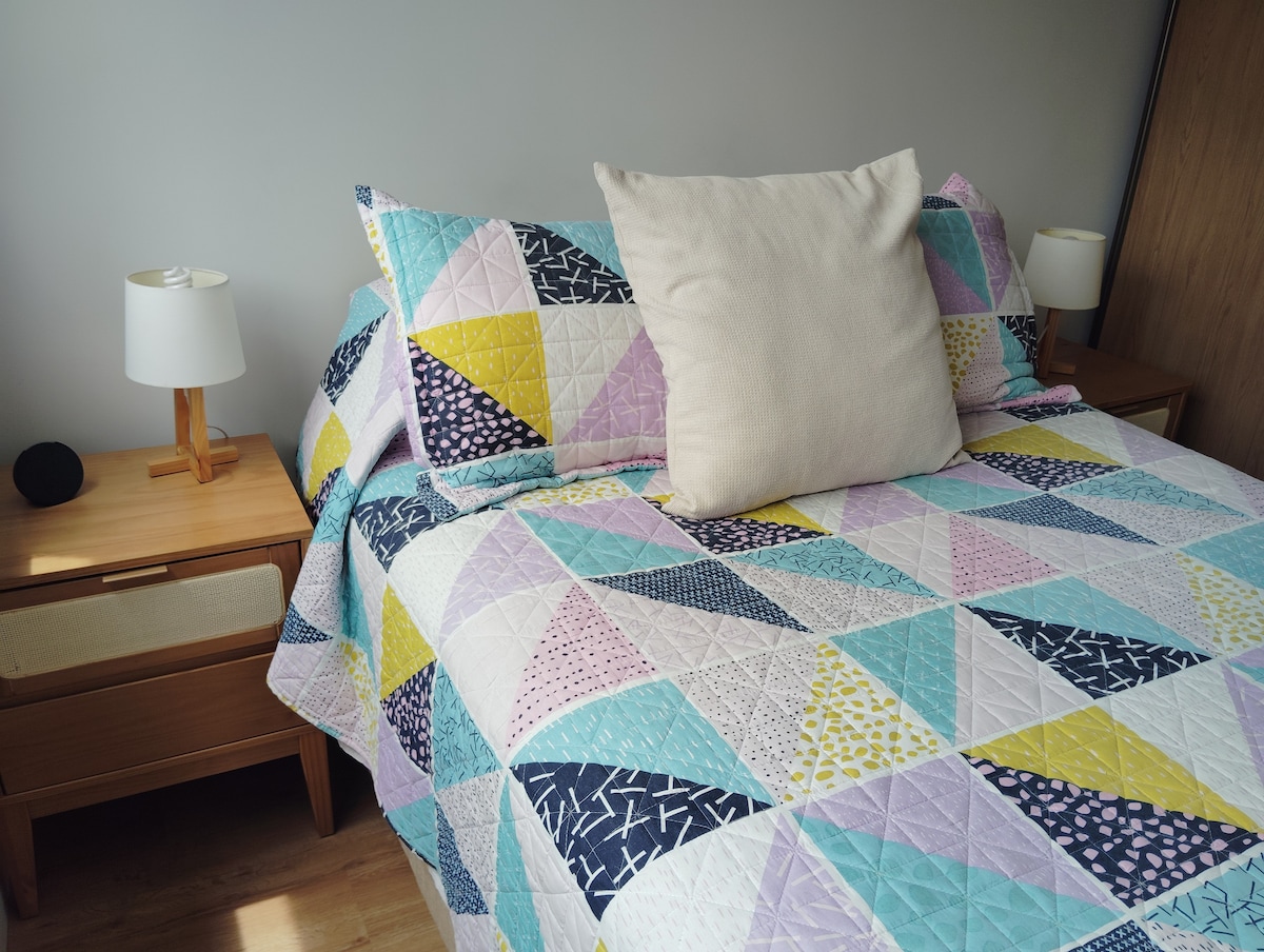 Árasán lárnach úrnua do suas le triúr, os comhair Plaza Entrevero. Timpeallacht shingil an - gheal le cistin chomhtháite, leaba chearnach amháin (fillte), leaba thoilg dhúbailte. Feistithe go hiomlán do 3 dhuine: éadaí leapa (cóta san áireamh), sraith iomlán tuáillí, gréithe. 40'Smart TV, Netflix. WI - FI. Aerchóiriú Foirgneamh, sprioc agus ardaitheoirí nua. Suíomh idéalach, lár iomlán Montevideo, leathbhloc ón bpríomh - ascaill (seirbhísí agus iompar)