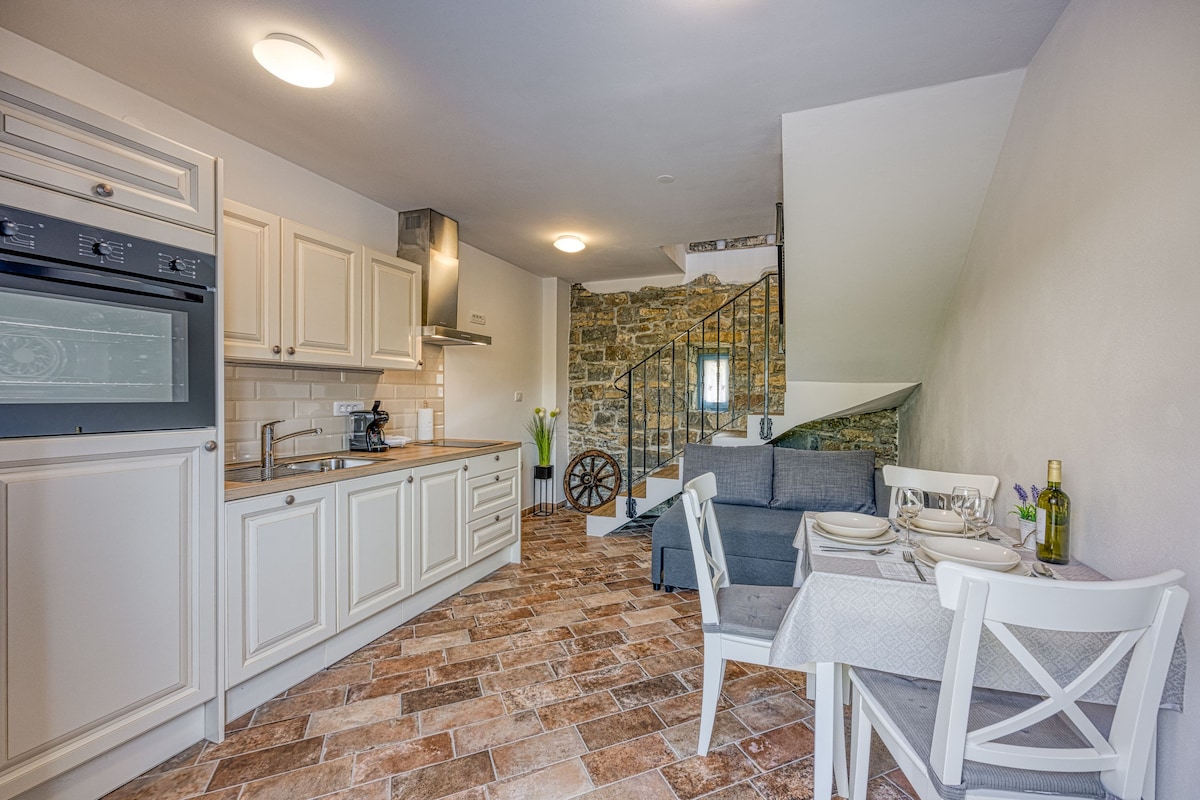 Tá teach teaghlaigh i stíl na tíre suite i gceantar socair tithe teaghlaigh inar féidir leat taitneamh a bhaint as radhairc áille ar Karst. Tá gach trealamh nua sa chistin lena n - áirítear oigheann, micreathonnán, sorn agus cuisneoir. Is féidir le háit itheacháin 6 dhuine a óstáil. Tá tolg compordach agus dhá chathaoir uilleacha sa seomra suí. Tá go leor spáis i ngach seomra leapa do do rudaí. Tá dhá leaba shingil i seomra leapa 2 ar féidir iad a cheangal agus a úsáid mar leaba dhúbailte. Tá folcadán, washbasin, bidet agus meaisín níocháin sa seomra folctha, tá an leithreas scartha.