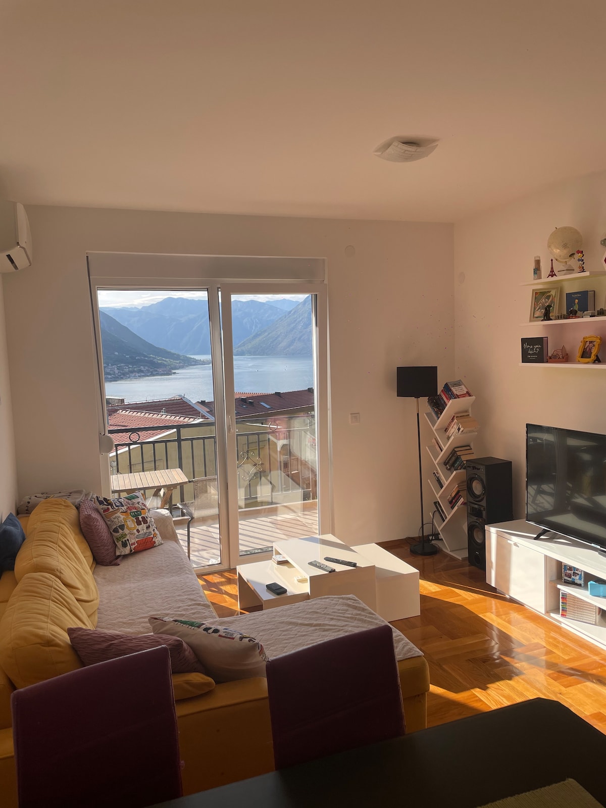 Árasán álainn le radharc iontach ar Boka Bay agus Kotor. Tá an t - árasán nua - aimseartha, tá ardán ann atá oiriúnach le haghaidh fanacht suaimhneach le suíomh iontach. Tá trá ar 50m ó réad. Táimid suite ar 1.4 km ar shiúl ón Seanbhaile;ag dul go Prcanj.Hospital, tá na póilíní agus an post 300m away.Banks sa Seanbhaile. Tá an t - ollmhargadh 300m ar shiúl. Tá na haerfoirt ar fad: Tivat-7km,Podgorica -90km,Cilipi (An Chróit )-70km. Fáilte , Tá stair bheo ag Kotor i mbá iontach