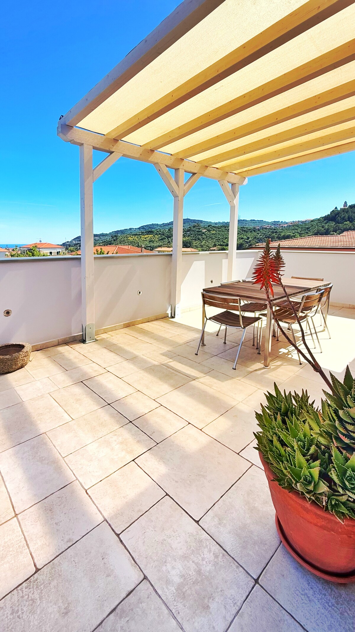 Teach beag tumtha i bhflóra na Meánmhara, timpeallaithe ag crainn ghiúise agus agaves, le radharc iontach. Uathúil dá shuíomh ag breathnú amach ar an bhfarraige, ciúin agus scoite amach ach inrochtana go héasca. Is féidir an trá a bhaint amach go héasca laistigh de chúpla nóiméad siúil síos an cnoc. Tá rochtain agat ansin ar chosán fada rothaíochta a thrasnaíonn Riviera Ligurian. Níl go lár Oneglia lena chuan sainiúil ach 20 nóiméad ar shiúl na gcos nó 5 nóiméad i gcarr.
