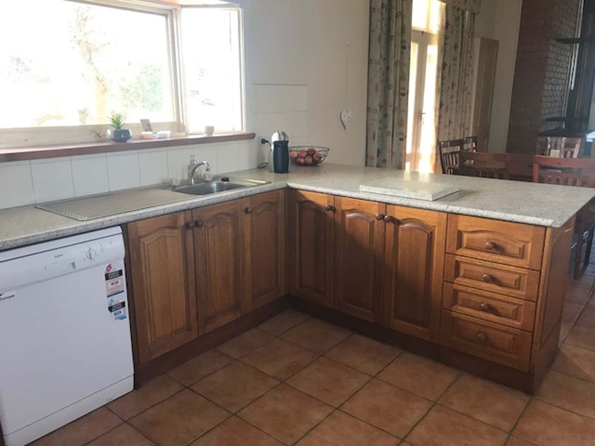 Éalaigh go dtí an Trentham gleoite (1 uair 15min ó Melbourne) agus faigh blaiseadh den mheascán foirfe de dhraíocht thuathúil agus de chompord nua - aimseartha ag ár seomra leapa 3 sheomra leapa mionlach, 2 sheomra folctha le sabhna infridhearg! - gan ach siúlóid 2 nóiméad ó chroílár an bhaile. Lig do scíth cois tine sna míonna níos fuaire. Deartha chun freastal ar theaghlaigh, ar chairde nó ar lánúineacha. Le cistin iomlán, téamh/fuarú duchtaithe, seomra folctha, en - suite. Tá áit chodlata do 8 nduine sa teach seo (2x Banríon, 2x Singil + 1x leaba thoilg dhúbailte). Cuir peataí leis an áirithint, le do thoil