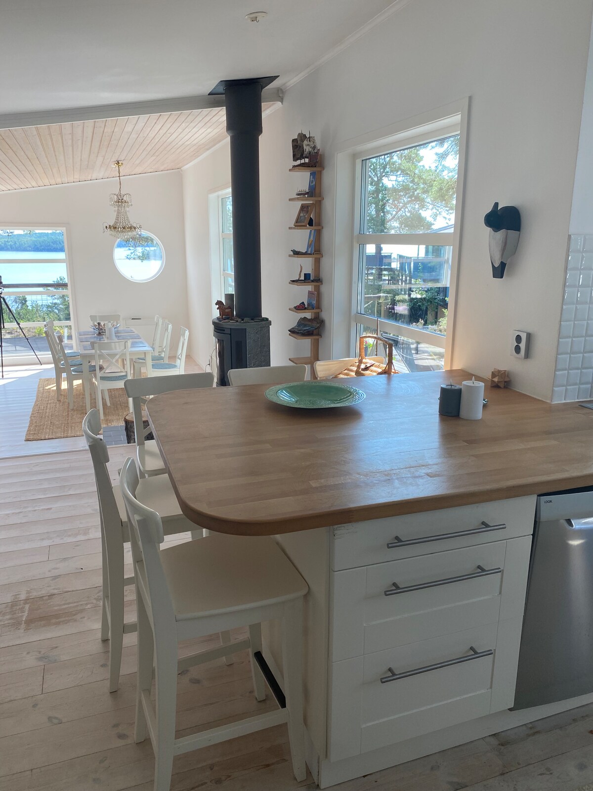 Teach cois farraige ar lamairne👍Bain sult as an tobán te agus an sabhna dóite adhmaid. Timpeallacht iontach lasmuigh. Teach nua - aimseartha agus lánfheistithe, maisithe go blasta. Eispéireas foirfe dóibh siúd ar mian leo am suaimhneach álainn a bheith acu ar an uisce🌞 Más mian leat a bheith gníomhach: canú, siúl sa pháirc náisiúnta in aice láimhe, dul ag rith nó dul ag bádóireacht. Níl sé seo go léir ach 30 nóiméad ó Stócólm! Samhlaigh cúpla lá nó seachtain a chaitheamh sa timpeallacht seo 😀 - Tá an spás ar fad ar fáil go príobháideach duit mar aíonna.