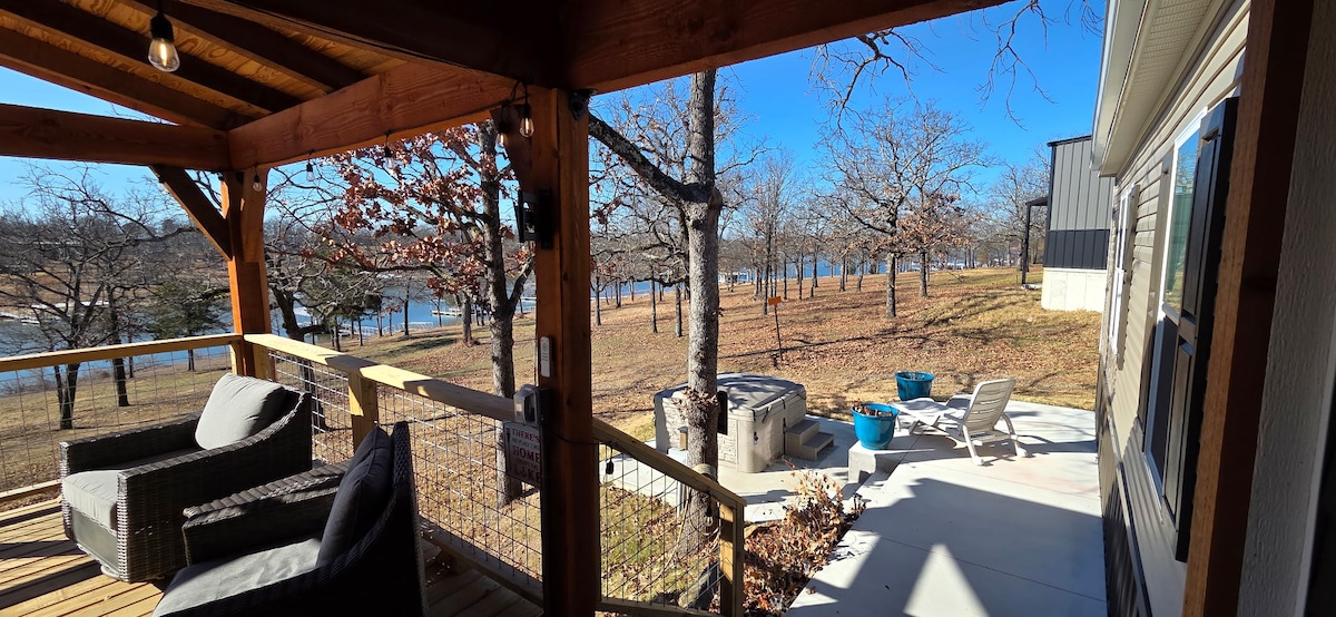 Teach an Locha Traidisiúnta ag breathnú amach ar Loch Eufaula