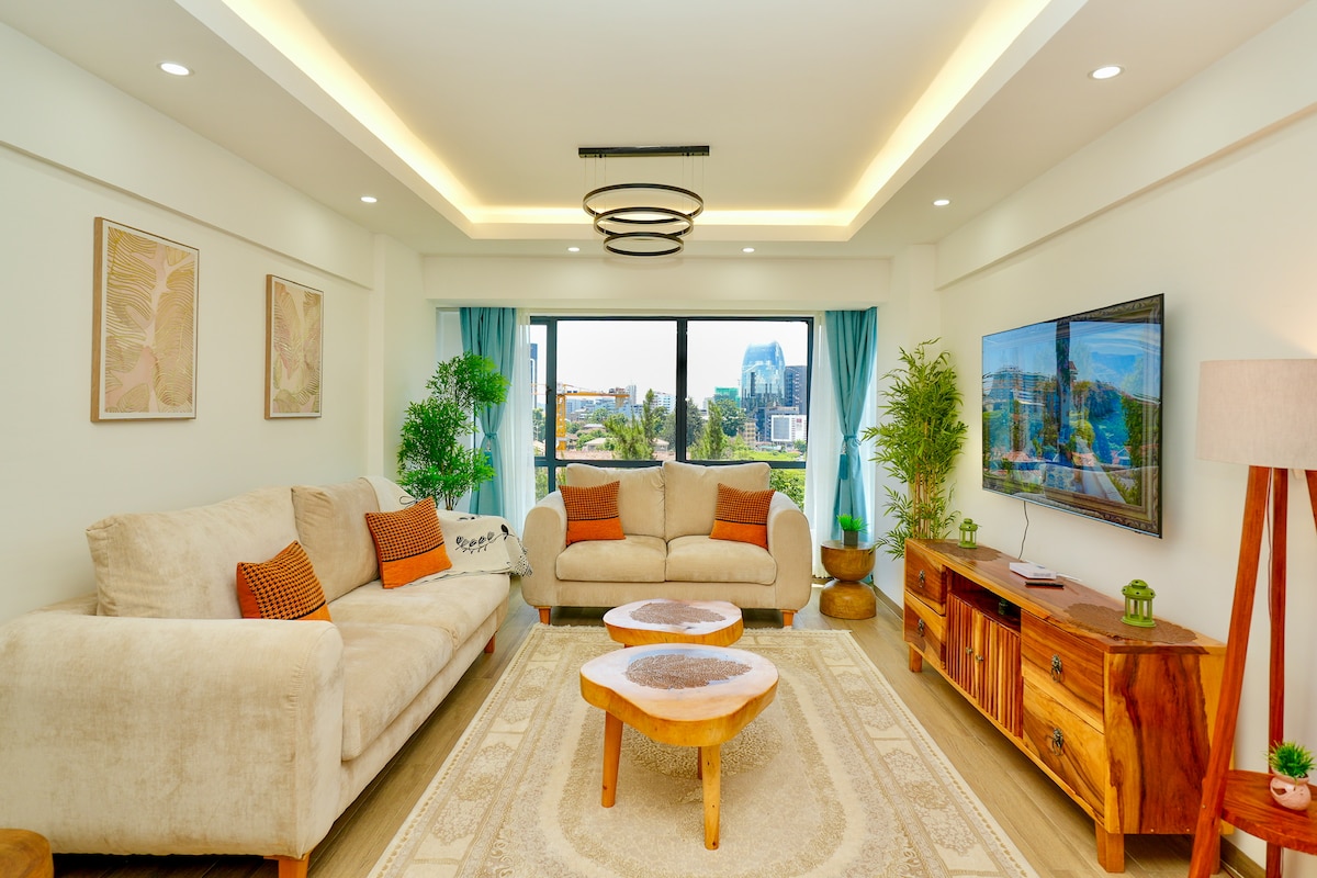 Tá an t - árasán galánta iomlán seo nua - aimseartha, fairsing agus compordach, le seomra leapa amháin agus seomra folctha en - suite, leaba shómasach le méid na Banríona, seomra bia galánta, seomra leapa & tolglann Netflix - TV, balcóin, cistin agus áit níocháin. Cuirtear gach saoráid ar fáil, lena n - áirítear Wi - Fi tapa agus áiseanna gnó gan teorainn. Suite i mbruachbhaile ciúin duilleach, ach freisin gar do Westgate, Sarit agus Lavington siopadóireachta, bialanna, moil ghnó, CBD agus cúpla méadar ar shiúl ó shiamsaíocht oíche Westlands.