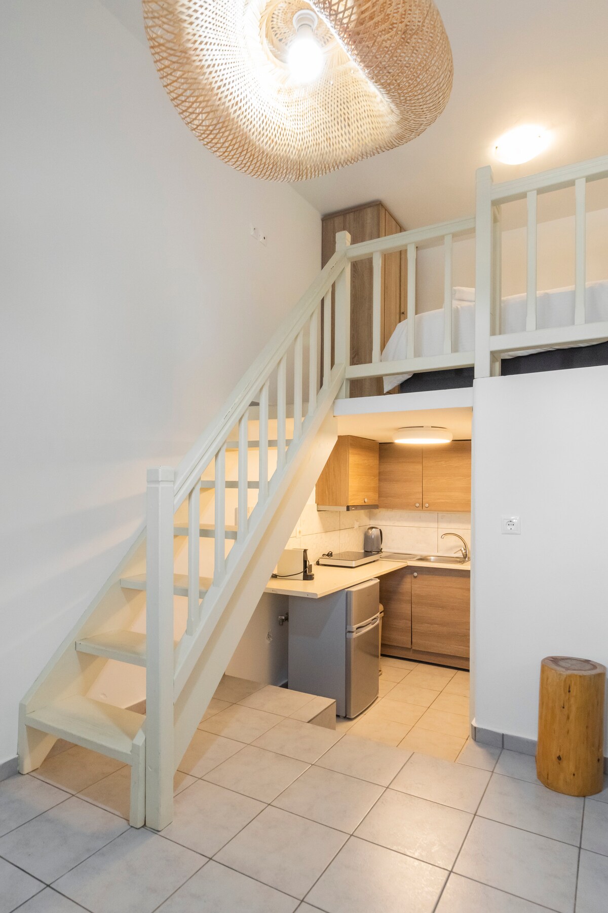 - Lóistíní ar cíos ina bhfuil leaba ar airde inrochtana Míconos