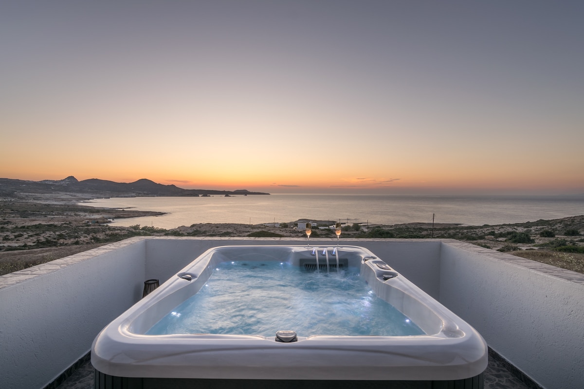 Faigh blaiseadh de dhraíocht Oileán Milos ó phointe vantage uathúil ár muileann gaoithe traidisiúnta, atá suite i gcroílár Adamas, calafort an oileáin. Ag dul siar go dtí an 19ú haois, cuireann an muileann gaoithe seo atá athchóirithe go cúramach tearmann uathúil ar fáil. Scaiptear thar dhá urlár é, tá seomra suí teolaí ar an mbunurlár agus seomra leapa compordach le leithreas ceangailte ar an urlár uachtarach sa mhuileann gaoithe. Téigh taobh amuigh agus cuir radharcanna lánléargais iontacha de mhurascaill Adamas romhat.
