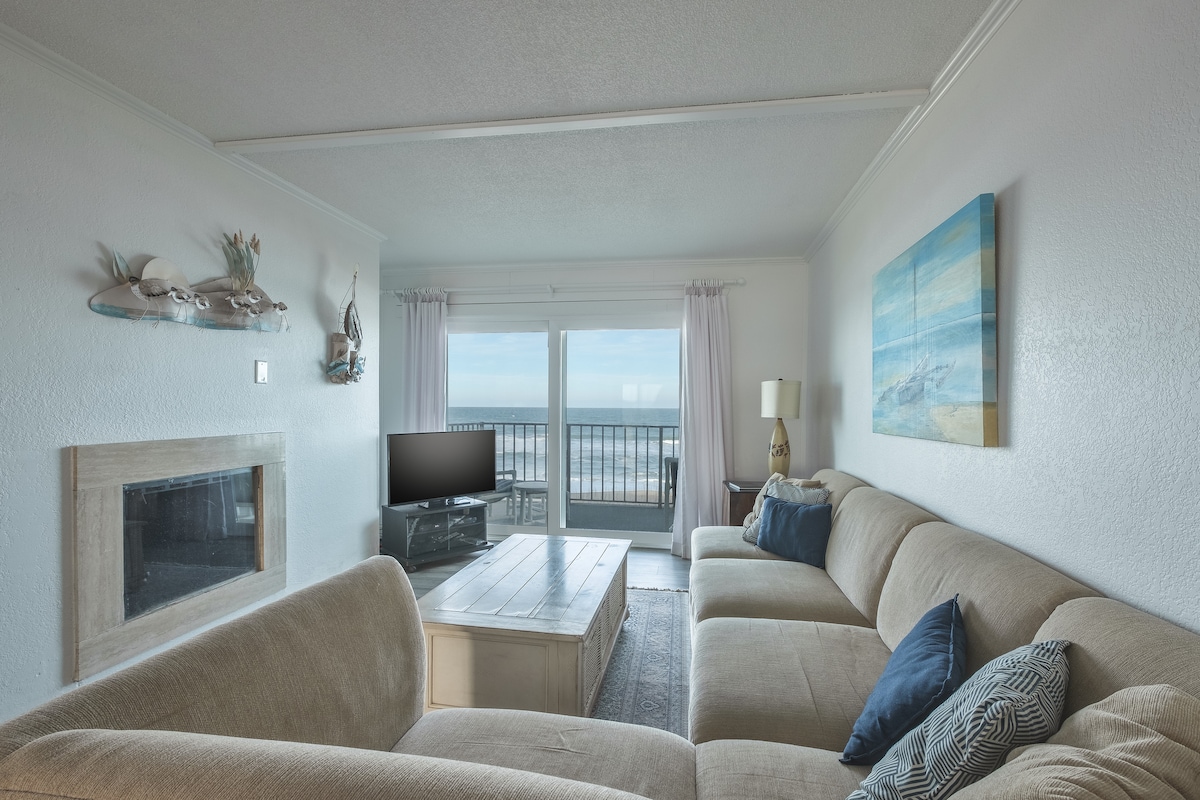 Titeadh i do chodladh le fuaim na farraige agus bain sult as laethanta trá ón árasán seo in ionad ar imeall na farraige in Kill Devil Hills. Tá radhairc ar an aigéan, solas nádúrtha, agus radhairc i dtreo Chuimhneachán Náisiúnta stairiúil Wright Brothers ón bpóirse tosaigh agus ó na fuinneoga grianmhara ar an taobh. Téigh díreach isteach ar an ngaineamh gan aon bhóithre le trasnú, fuarú sa linn snámha ar imeall na farraige, ansin lig do scíth i gcompord agus i bpríobháideacht leagan amach níos ciúine i stíl cúinne — foirfe do lánúineacha, do theaghlaigh, agus d'aíonna atá ag taisteal le peataí.