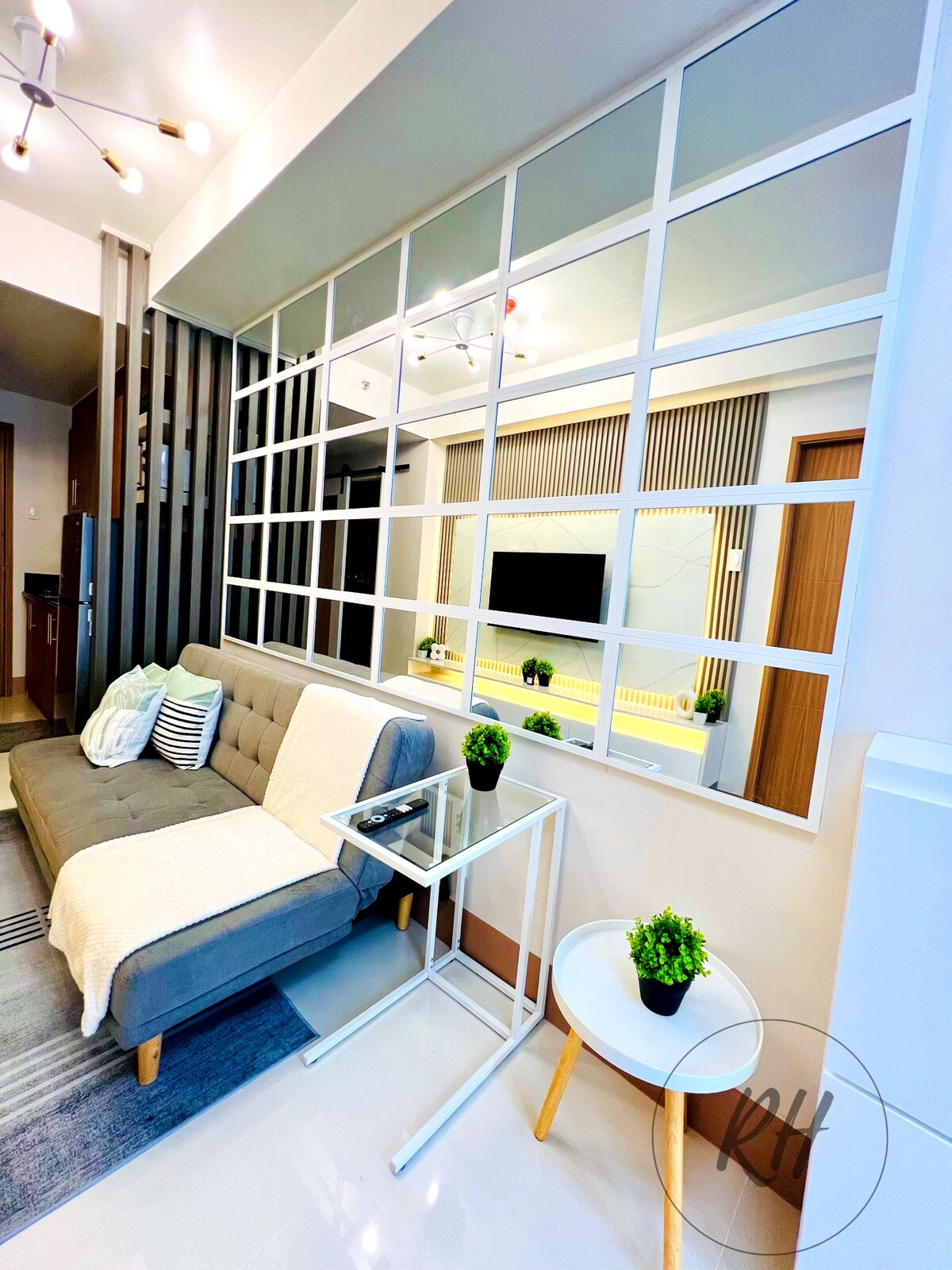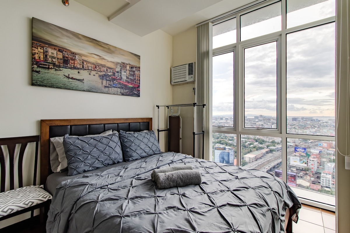 Is árasán 38 méadar cearnach, seomra leapa amháin é an spás, le balcóin, ag breathnú amach ar radharc iontach 90 céim ar Alabang, Skyway, agus limistéar linn snámha agus gairdín méithe an fhoirgnimh - rud a fhágann go bhfuil sé ina chothromaíocht de spásanna uirbeacha agus glasa. Go hiontach le haghaidh lóistín, mar rogha eile oibre - ón mbaile, nó do theaghlaigh ar mian leo a scíth a ligean agus taitneamh a bhaint as am le chéile. Is aonad tógtha é le sonraí casta - fairsing i gcomparáid le seomra óstáin ag an bpointe praghais céanna. Cuirtear ár bpáirceáil íoslaigh féin ar fáil d'aíonna/d'aíonna gan aon chostas breise.