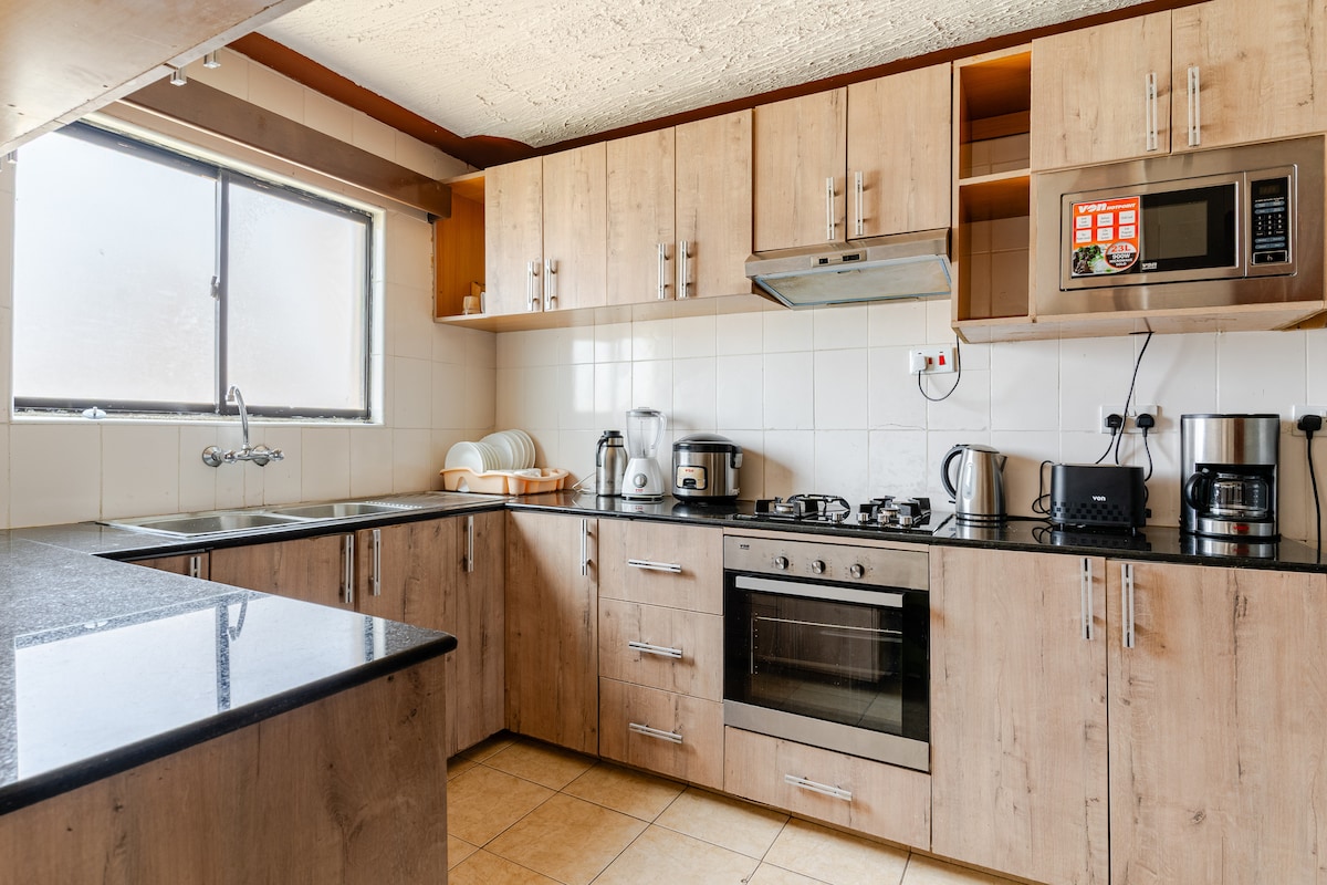Más mian leat eolas a chur ar Nairobi i gcomharsanacht atá ag teacht chun cinn, barántúil agus bríomhar, is é seo an áit duitse. Ag baint tairbhe as radhairc iontacha ón aer agus aer úr, tá gach saoráid nua-aimseartha ar fáil san árasán cluthar seo atá feistithe go comhaimseartha i dteach álainn atá suite i gceantar ardleibhéil Kileleshwa. Níl i nasc Wi-Fi ardluais, cistin lonrach lánfheistithe, agus seomraí leapa a bhfuil cothabháil fhoirfe déanta orthu ach cuid de na bunriachtanais a chuirtear ar fáil lena chinntiú go mbeidh fanacht compordach baile ag aíonna.