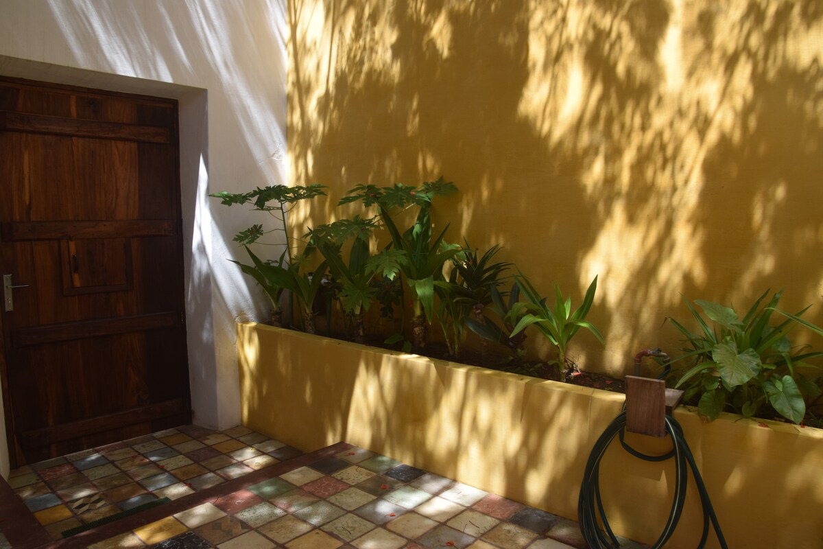 Teach beag uathúil atá suite ar shráideanna foirceannadh Ilha de Mocambique. Suite go foirfe chun rochtain a fháil go héasca ar an trá (5 nóim) agus ar bhialanna atá le tairiscint ag an Oileán. I bhfad ó fhuaimeanna glóracha gluaisrothair le gairdín síochánta le haltóir coiréil ag féachaint ar chrann acacia. Cistin lasmuigh ina bhfuil dhá sheomra leapa le AC le haghaidh oícheanta teo.