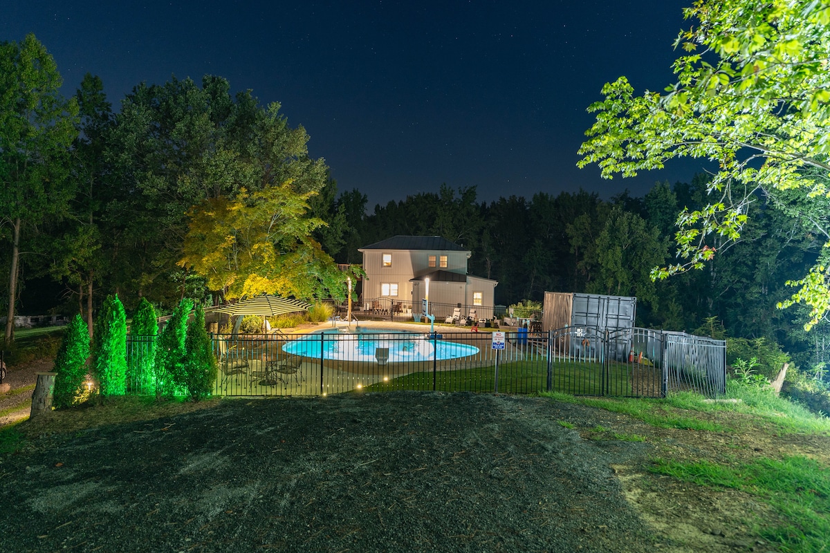 Éalú go héasca go dtí an choill ar homestead 14 acra nach bhfuil ach 20 míle ó DC. Timpeall na foraoise le radhairc iontacha, arna ndearadh ag ealaíontóirí, is ceiliúradh ar an Dúlra agus ar an Ealaín é an hideaway cúlráideach seo. Lig do scíth i measc na gcrann ársa seo agus na critters go léir ag canadh go fuaimrian an oíche. Bain sult as tine, frolic sna páirceanna, léigh ar ámóg, strum ina ghiotár, agus braith brú an tsaoil nua - aimseartha ag leá ar shiúl. Déan iniúchadh ar an iliomad cosán buacach in aice láimhe. Foirfe le haghaidh tearmainn agus ceardlanna.