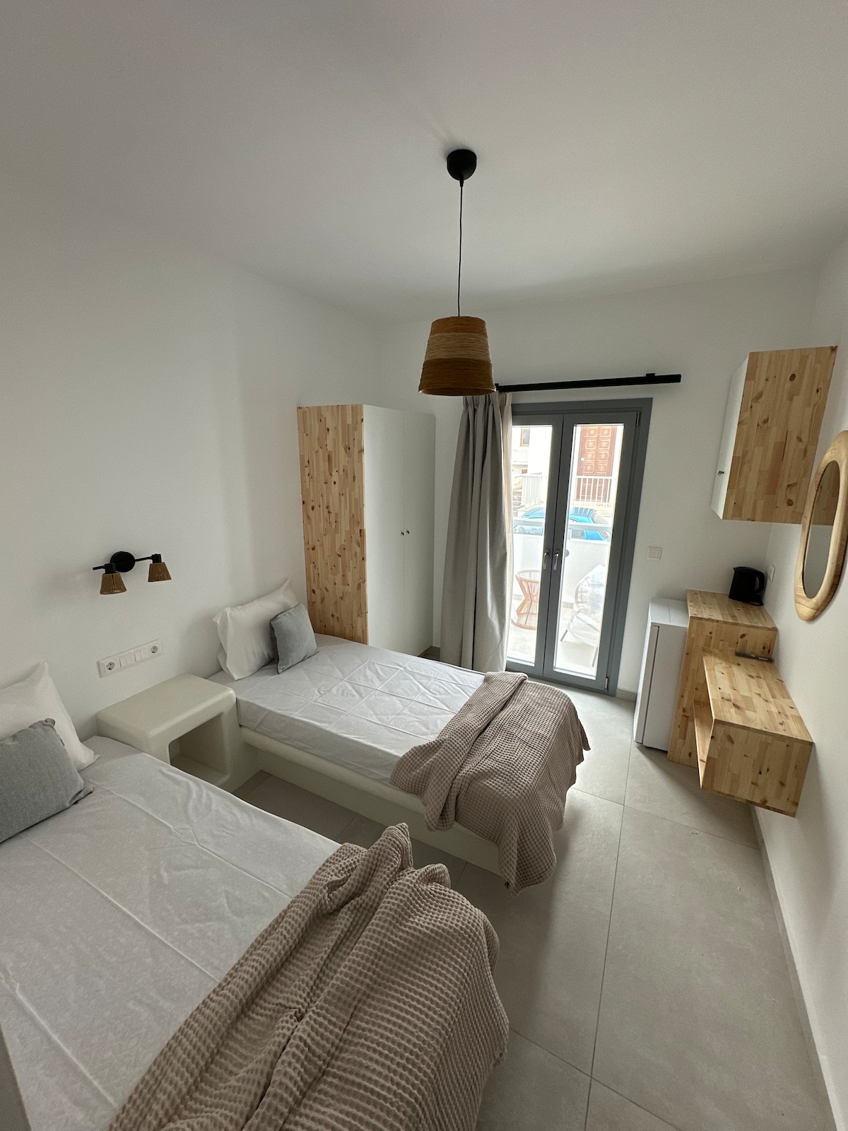 Seomra an - rómánsúil le radharc iontach ar an bhfarraige ar fud Piso livadi, an fharraige Aeigéach agus an ché thraidisiúnta. Tá glanadh laethúil ann agus tar éis fanacht 2 lá, athraítear tuáillí agus gach tríú lá ar na braillíní . Táimid i gcónaí timpeall chun fanacht deas taitneamhach a thairiscint duit inár n - áit !!!