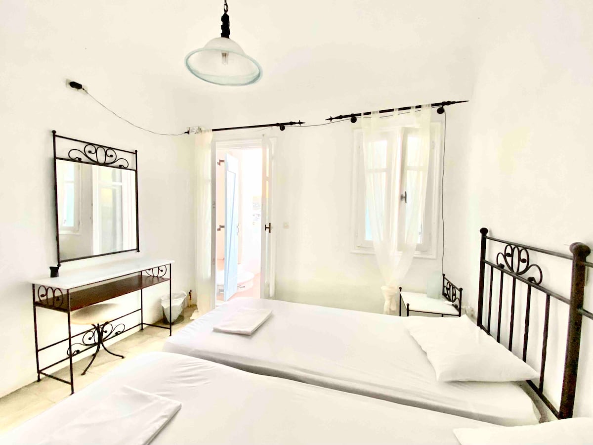 Déanfaidh árasán úrnua, geal agus úr de dhearadh Cycladic do 2 -6 aoi, le radharc na farraige, i extraordusa iontach Paros, cogarnach duit..."Cad teach !". Níl ach 3 nóiméad ag siúl ó lár Naousa, 6 nóiméad ag siúl go dtí an trá is gaire, le spás páirceála ar fud na sráide agus 2 verandas chun taitneamh a bhaint as gaoth an tsamhraidh le radharc ar Mykonos agus Naxos, glacfaidh an teach iontach seo leis na cuimhní is fearr i do shamhradh! Tabharfaidh tú cuairt ar ár bhfeirm luibheanna orgánacha agus go leor eile agus go leor eile!