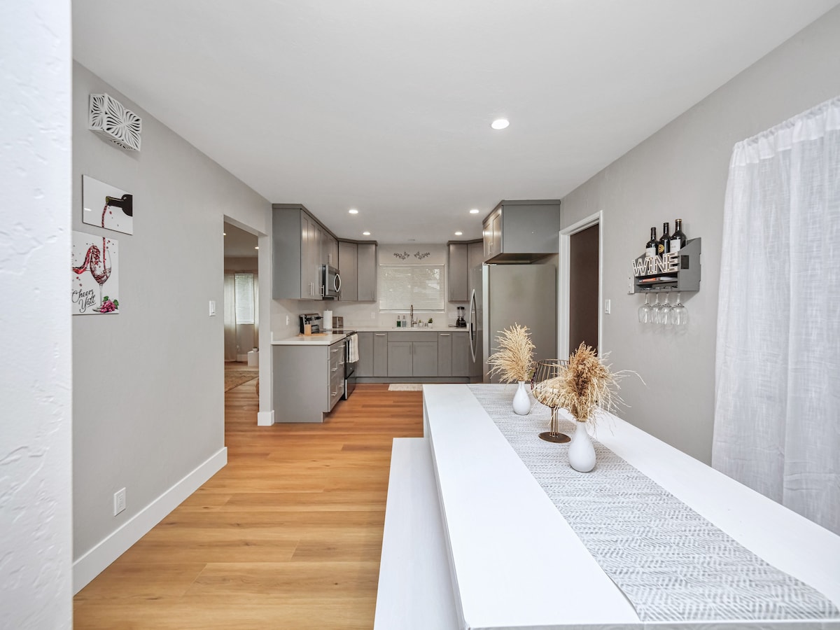 ✨Fáilte go dtí ár dteach álainn i nGleann Napa, atá suite go foirfe idir fuinneamh bríomhar lár na cathrach agus áilleacht iontach an Ghleanna. 6 nóiméad go lár Napa, 5 nóiméad go cosán Silverado, 20 nóiméad go Sonoma. Bain sult as na bialanna den scoth, siamsaíocht oíche bhríomhar i lár na cathrach, nó téigh isteach sa ghleann chun iniúchadh a dhéanamh ar na cnoic rollta agus ar na tírdhreacha áille a bhfuil clú agus cáil ar an réigiún seo. Tar éis lá eachtraíochta, téigh ar do shuaimhneas chuig ár neart spáis chun athghabháil agus athnuachan a dhéanamh.✨