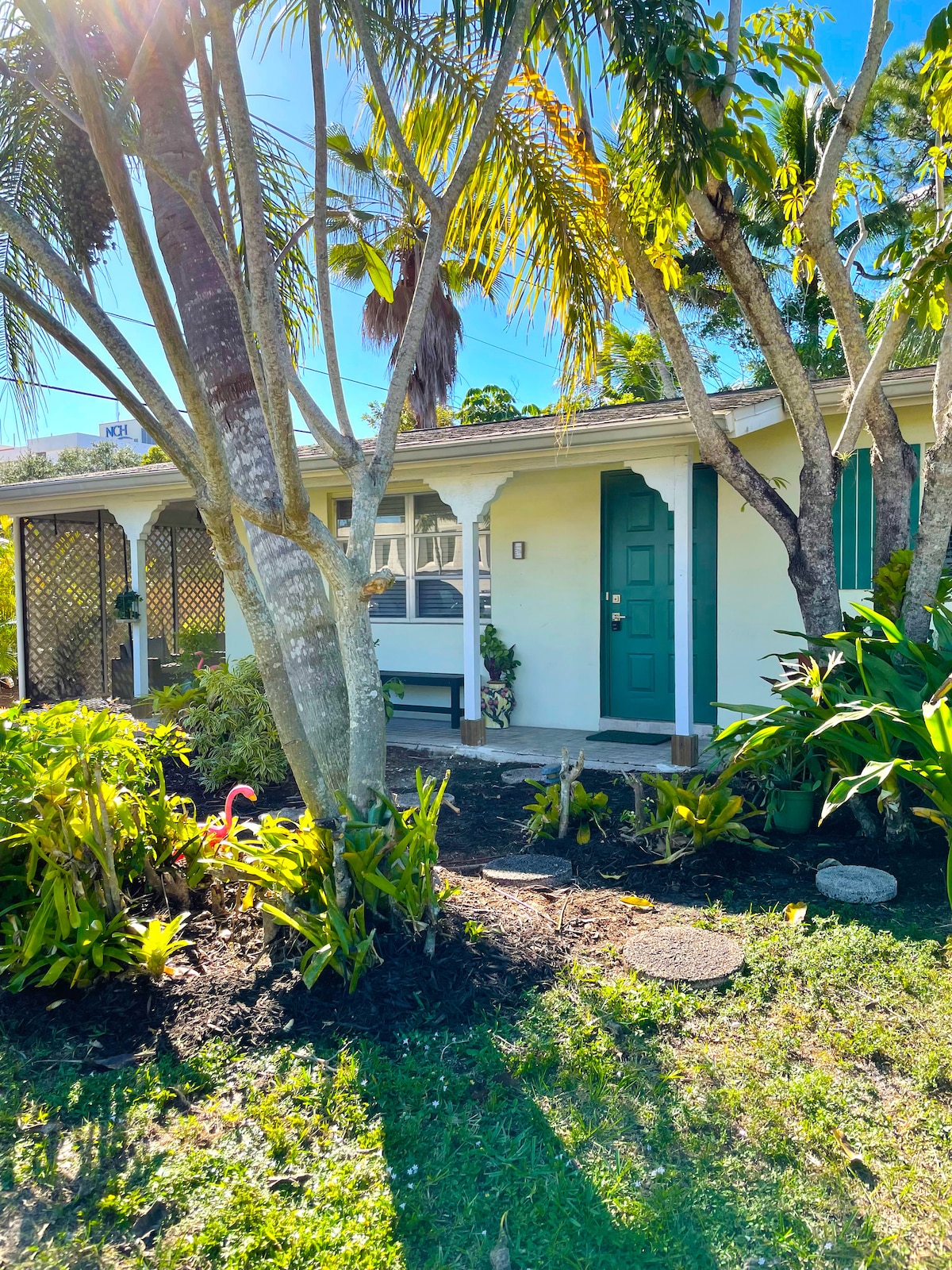 Located less than One Mile from the Beach in the Center of the City Hustle, Open Spaces & Bright Beachy Vibes gently remind you of why you came! French Doors in both Bdrms open to a Beautiful Screened Lanai with Outdoor Dining & BBQ Overlook a Little "Beach". Master Bdrm has a King Bed Ensuite Bathroom w/Shower; additional Guest Bdrm has 2-Twins or King Bed and Hall Guest Bathroom. Enjoy Pickleball on our shared court or ride one of our bikes to the nearby beaches, grocery, or restaurants!