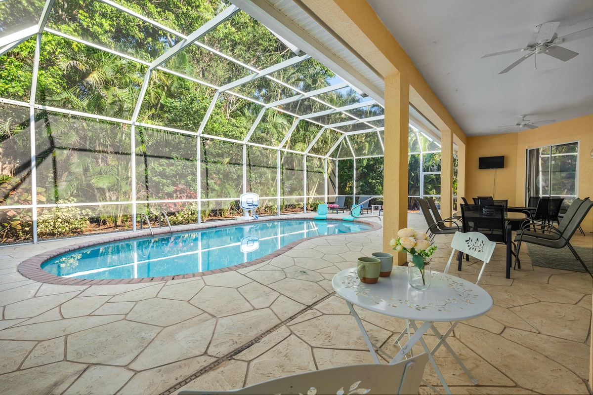 🌐 Aithníonn aíonna muid mar Catch of Naples — léigh na léirmheasanna agus féach cén fáth a roghnaíonn taistealaithe gníomhacha muid! ✨ Seo chugat Catch of Naples ✨ 🎾 Bí gníomhach ag Blue Coral Naples Coastal Home in WTC – tá 16 chúirt leadóige agus 4 chúirt pickleball, 2 linn snámha, tobán te agus sauna sa phobal! 🏖️ Níl ach 4 mhíle go tránna Naples agus 10 nóiméad go dtí bialanna i lár na cathrach. 🚲 Tá rothair, cathaoireacha trá agus scáthanna san áireamh le haghaidh spraoi gan teorainn amuigh faoin aer. 🌴 Lig do scíth ar an lanai agus na páistí ag súgradh go sábháilte inár bpobal geataithe.