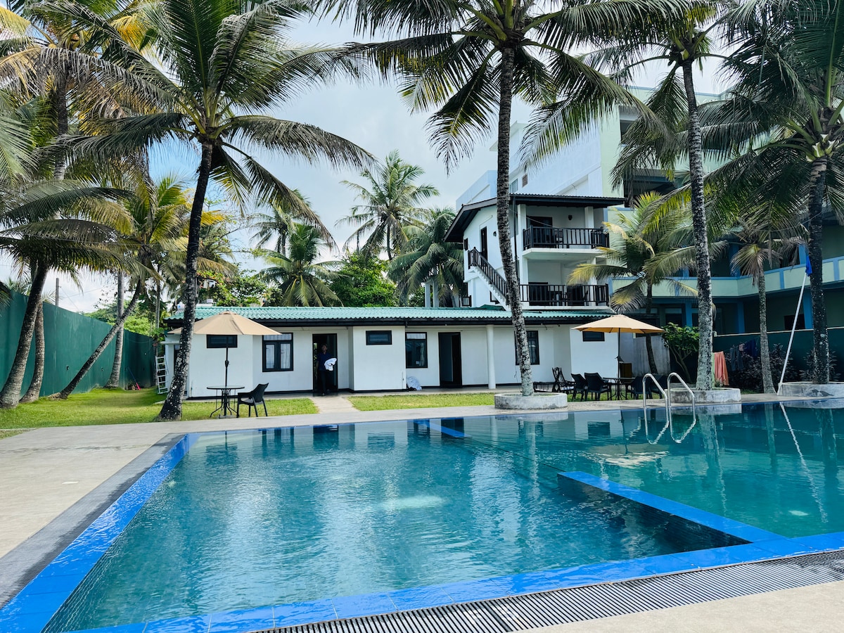 Tá Óstán Ease Beach suite go hálainn ar stráice leathan den trá in aice leis an mbaile turasóireachta Hikkaduwa. - Radharc iontach lánléargais ar an bhfarraige! - 10 seomra - 2 chatagóir éagsúla. - Linn snámha, leapacha gréine agus bialann. - Bricfeasta san áireamh. - Suaimhneach & suaimhneach! Is duitse an áit seo atá ag iarraidh a bheith suite beagán ar shiúl ó na páirtithe in Hikkaduwa - chun do scíth a ligean agus taitneamh a bhaint as ár gcuid shíochánta den trá! Ach níl ann ach siúlóid 10 nóiméad (trá) nó 2 nóiméad le tuktuk chuig na háiteanna níos bríomhaire.