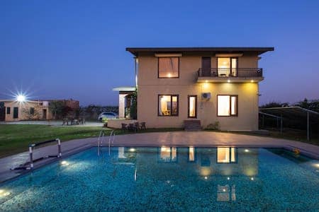 Villa ◆sómasach 3 - BHK atá suite i sráidbhaile Mordha ◆Nithe is díol spéise in aice láimhe: Neemrana Fort – 34 km, Alwar Forts – 60 km Seomra suí ◆galánta ina bhfuil taobh istigh galánta ◆Linn snámha phríobháideach le haghaidh eispéireas úrnua ◆Gairdín glas méith atá foirfe le haghaidh scíthe Dinnéar ◆luí na gréine cois linne le haghaidh tráthnóna draíochtúil Béilí ciseáin ◆ar snámh le haghaidh teagmháil uathúil ◆Meascán sofaisticiúil de chompord agus aeistéitic nua - aimseartha ◆Ideal le haghaidh saoire ghearr shuaimhneach ach indulgent