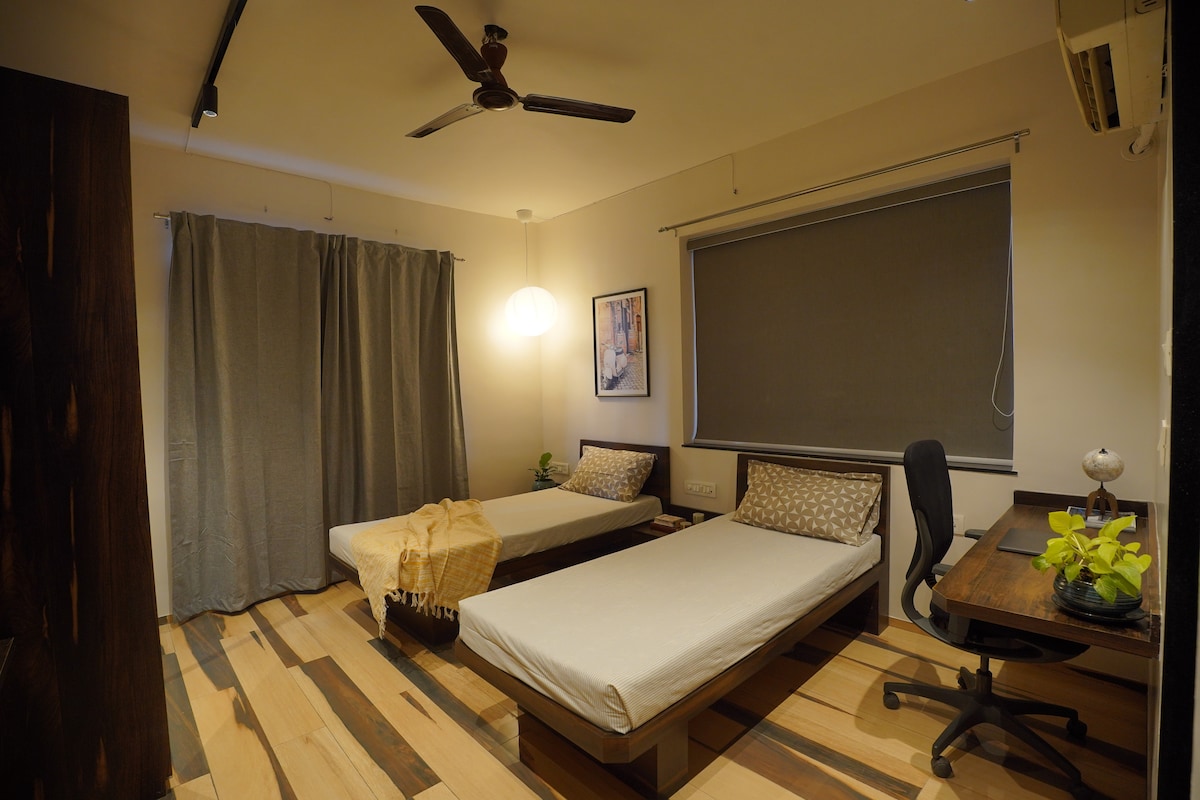 1KM from Mumbai Nashik Highway in a residential area. 29KM from Trimbakeshwar Temple takes 45mins,10KM from Nashik Road station. 4 wheeler covered parking is available Strictly for married couples or Family, with Photo IDs and it should match. Pets are not allowed, visitors are not allowed. 50 Mbps Wifi, Havells RO water filter & Kitchen essentials with Gas Stove. Two bedroom with AC Clothes Iron on demand Long stays discounts! FYI: we can host large groups. We also host in Thane