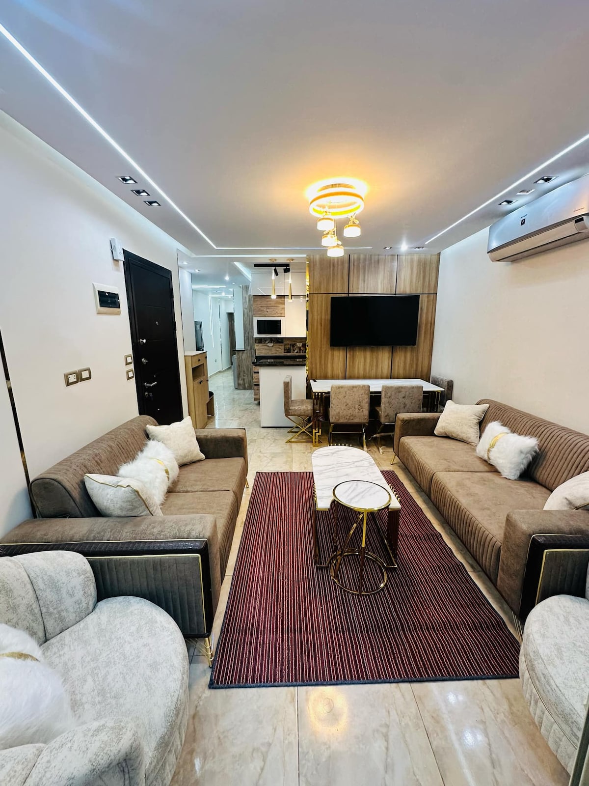 Experience the ultimate in modern comfort in our new 2-bedroom and 2-bathroom apartment suitable for 4 persons,Every inch of this stylish space is new and designed to make your stay unforgettable Our apartment is perfect for families or a business trip. You’ll find all the amenities you need, including a fully equipped kitchen, a comfortable living area Located in a prime compund, you’re just a short way from restaurants,shops in tagamoa and naser city Book now,,We can’t wait to host you!