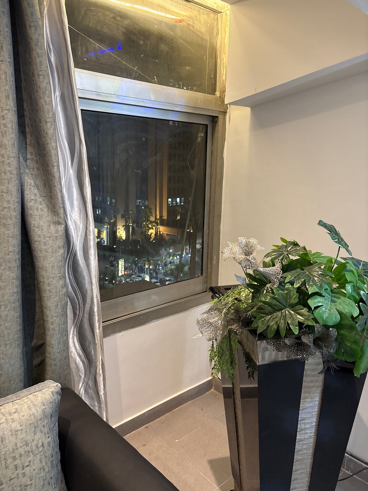 Árasán Stiúideo galánta i bPríomhshuíomh Tá an stiúideo lán - aerchóirithe, galánta seo suite in aice le New Cairo, Nasr City, Maadi, agus Heliopolis , i lár Cairo, agus in aice leis an Ionad Comhdhála Idirnáisiúnta. Suite i gcomhdhúil shlán le slándáil 24/7, cuireann sé saoráidí nua - aimseartha, idirlíon ardluais, agus cistin lánfheistithe ar fáil. Timpeallaithe ag bialanna, caiféanna agus seirbhísí riachtanacha cáiliúla, cinntíonn sé fanacht compordach d'aíonna gearrthéarmacha agus fadtéarmacha araon.