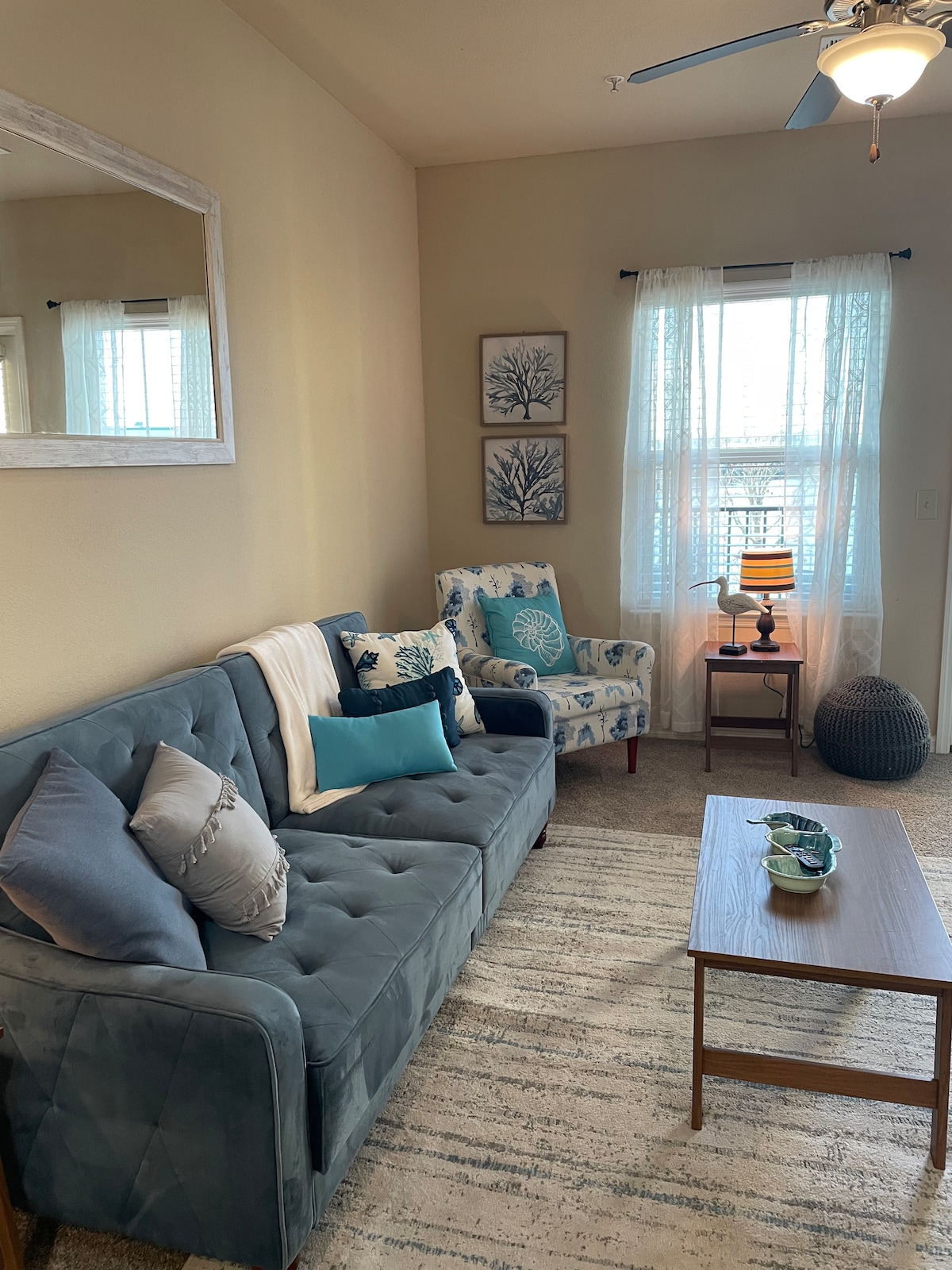 Resort Style Luxury • New Construction!! ADA certified accessible 1st story apartment: all are welcome. •Pets YES •Sleeper futon in the living room Perfect Location. •20 mins from Amelia Island / beaches and downtown Jacksonville. Enjoy resort style amenities: •Saltwater pool •24/7 fitness center •Bikes •Cyber Cafe •Community office + lounge area •Cornhole + poolside grilling •"Bark" park + pet spa Explore • 12+ miles of trails •Lakes and parks •Near dining / shopping