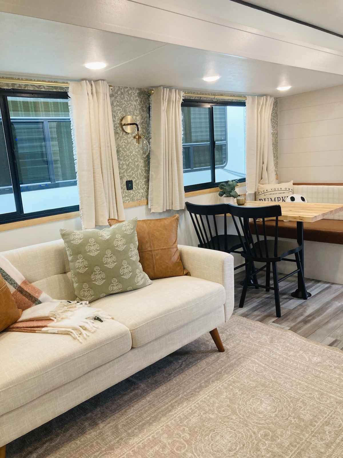 Taitneoidh an t - éalú uathúil rómánsúil seo go mór leat. Deartha chun suíomh pearsanta a chruthú chun bhur gcuid ama le chéile a fheabhsú. Tá an RV sách mór agus feistithe go hiomlán. Tá leaba rí California le barr caismír sa mháistirseomra leapa. Tá an oiread sin saoráidí ag an réadmhaoin, linn snámha an-mhór a bhfuil solas uirthi san oíche, ar dtús. Duga ar an abhainn chun taitneamh a bhaint as na radhairc. Rochtain ar chadhcanna ar an láthair. Tá limistéar/deic éadaí príobháideach roghnach ann ina bhfuil bord suathaireachta, tobán te agus cathaoireacha suaimhnis. Chuireamar teallach allamuigh leis le déanaí.