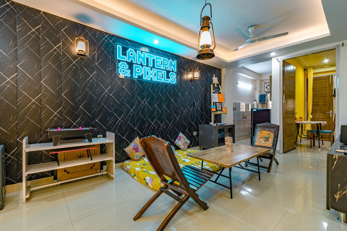 Is stiúideo só dearthóir é Aurae le Lumen Leaf atá ag ardú go hard os cionn AIPL Joy Street, Gurgaon. Frámaí gloine ó urlár go síleáil radhairc na cathrach. Bain sult as compord gan chomhoiriúnú: leaba dhearthóir, caitheamh bog, soilsiú giúmar, Wi - Fi tapa, Netflix, consól cluiche retro, cainteoir Marshall, spás oibre tiomnaithe, cistinéad, mionbheár agus cúinne léitheoireachta faoi sholas na gréine. SUÍONN Inox, caiféanna agus siopaí thíos staighre, agus tá CyberHub, Golf Course Road agus HUDA City Metro 12 nóiméad ar shiúl - oiriúnach do thurais ghnó, do thréimhsí fanachta nó do lánúineacha éalaithe.