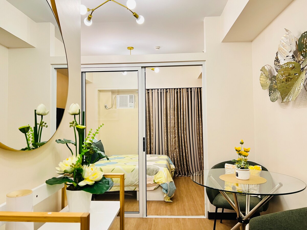 Fáilte go dtí ár Tahanan atá comhaimseartha agus spreagtha ag an Meánmhuir, aonad stiúideo 25 méadar cearnach in Mandaluyong, ach siúlóid ghearr ó Rockwell agus Powerplant Mall! Tá ár spás deartha againn chun fanacht compordach a chur ar fáil agus radhairc iontacha faoi luí na gréine á nglacadh againn, chomh maith le radhairc de Mandaluyong agus Makati ónár mbalcóin. Cibé acu an bhfuil tú ag tabhairt cuairte ar an obair, ar fóillíocht, nó ar mheascán den dá rud, is é ár Airbnb dea - fheistithe an bonn foirfe chun iniúchadh a dhéanamh ar chathracha bríomhara Mandaluyong agus Makati.