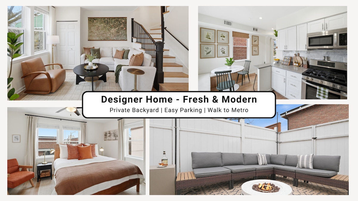 An — RÁCHAIRT — Seomra Leapa Príomhleibhéil & Folcadán gan Céimeanna! Fáilte go dtí do thearmann galánta D.C.! Tá 3,500 troigh chearnach de mhaireachtáil oscailte sa teach 5 sheomra leapa 4 sheomra leapa seo atá athchóirithe go hiomlán, gan ach 3 nóiméad ón Meitreo agus 10 nóiméad ón Teach Bán. Bain sult as páirceáil sráide saor in aisce. Foirfe do theaghlaigh nó do thaistealaithe gnó ag a bhfuil seomra leapa ar an bpríomhurlár, cistin chócaire, seomraí suí dúbailte, Wi - Fi tapa, agus teilifíseáin chliste. Cuir d'fhanacht in áirithe inniu agus faigh blaiseadh de D.C. i gcompord agus i stíl.