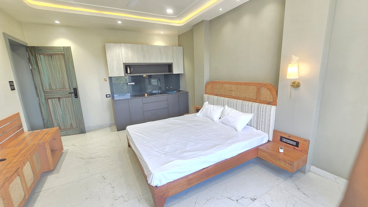 Fan i gcroílár na cathrach agus níl i ngach rud ach céimeanna ar shiúl - institiúidí cóitseála, margaí, bialanna agus eile. Tá an teach 2BHK seo, atá faoi throscán go hiomlán, ina thearmann suaimhneach ina bhfuil intí galánta, éadaí leapa compordacha, agus spás atá oiriúnach don obair. Foirfe do mhic léinn, do ghairmithe atá ag obair, nó do theaghlaigh atá ag tabhairt cuairt ar Kota. • Aerchóiriú • Cistin fheistithe • Socrú atá oiriúnach don obair • Éadaí leapa compordacha agus maisiúchán nua-aimseartha