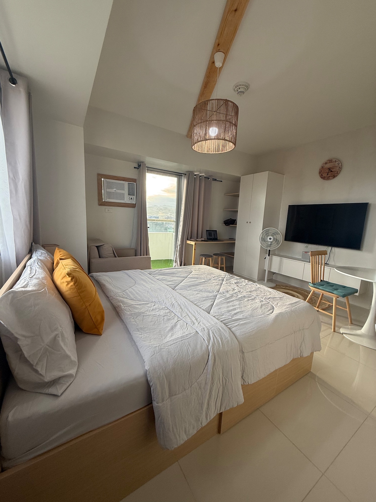 Céimeanna isteach i gcompord agus i stíl leis an árasán 1 sheomra leapa seo atá deartha go hálainn. Cistin nua - aimseartha le fearais chruach dhosmálta agus balcóin phríobháideach le leagan amach oscailte/coincheapa - foirfe chun do scíth a ligean agus siamsaíocht a dhéanamh. Bain sult as saoráidí den scoth lena n - áirítear ionad aclaíochta, linn snámha agus slándáil 24/7. Suite go háisiúil in aice le siopaí, bia agus idirthuras. Príomhshuíomh. Ospidéal Dochtúirí Mactan 5 nóiméad 3 nóiméad Gaisano Grand Mall Bialanna agus Caiféanna Áitiúla in aice láimhe In aice le hionaid saoire agus tránna cáiliúla