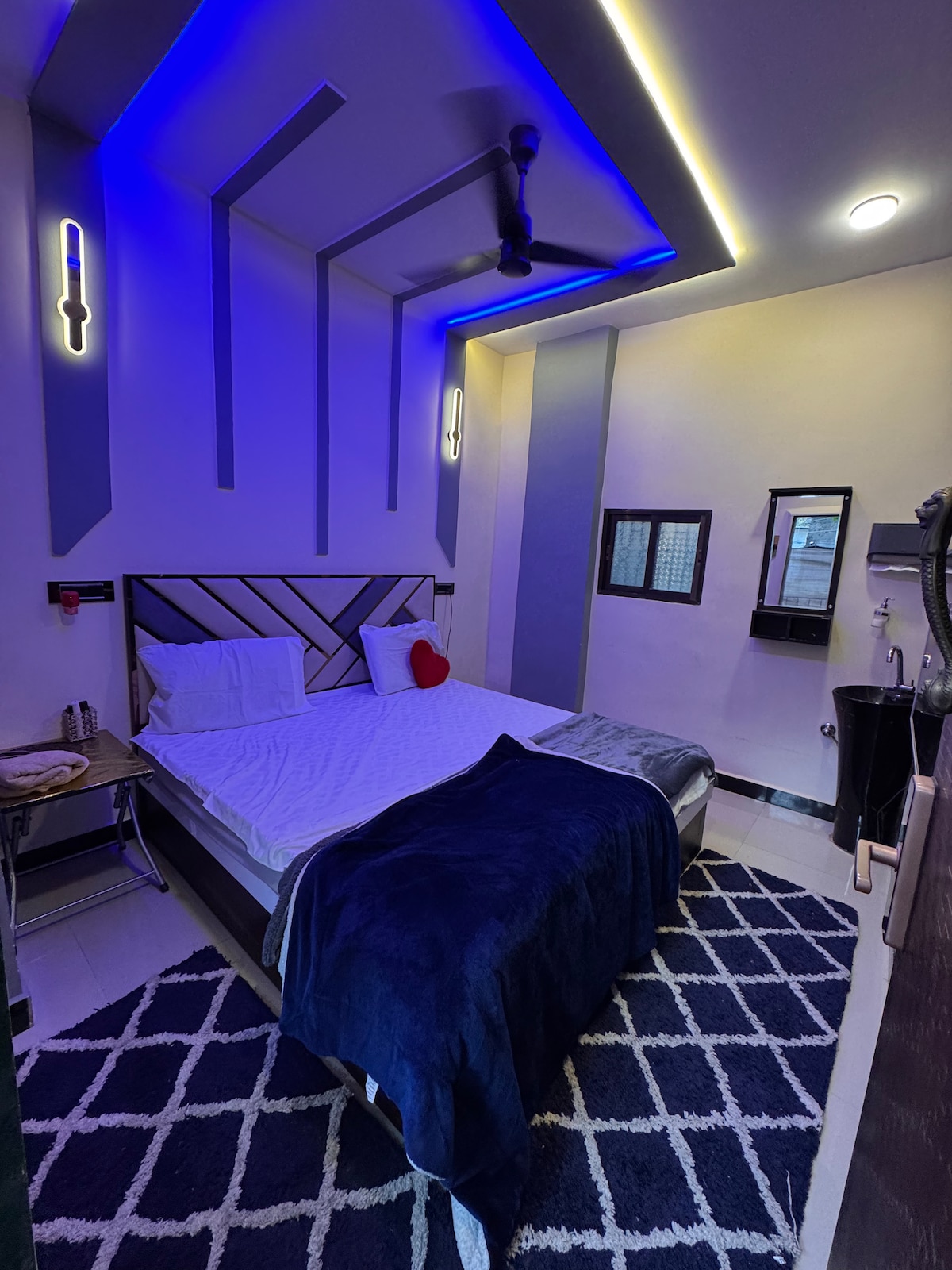 Tá an t - árasán suite i bhfoirgneamh cónaithe laistigh de chrios glas. Cuireann sé timpeallacht shuaimhneach chiúin ar fáil gan aon chur isteach. Tá an seomra leapa aerchóirithe agus tá saoráidí éagsúla ann, mar a thaispeántar sna pictiúir. I measc na ngnéithe breise tá Wi - Fi, teilifíseán cliste, cistin faoi throscán le gás GPL, agus uisce te agus fuar. Tá an t - árasán fairsing agus aeráilte go maith. Tugann Pls faoi deara go bhfuil cruthúnas ID éigeantach, & ní cheadaítear cuairteoirí. Níl lóistín ar fáil ach do shaoránaigh na hIndia; ní cheadaítear aon eachtrannaigh.