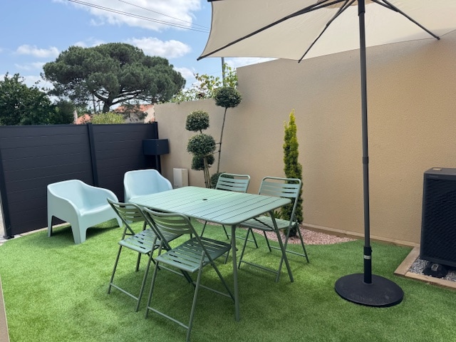 Attention, location d'un samedi à un samedi en juillet et août. Idéale jusqu'à 6 personnes, maison de 90m2, cuisine entièrement équipée, salon avec tv, internet wifi (fibre). 3 chambres, salle d'eau double vasque et douche, WC indépendant. A l'extérieur jardin à l'ombre des noisetiers, terrasse avec sa pergola fleurie, terrain entièrement clos. Dépendance sécurisée. Commerces à 300m, arrêt de bus a 150m, bourg au pied de nombreux itinéraires de randonnées, golf a 2mn, plages a 25mn...