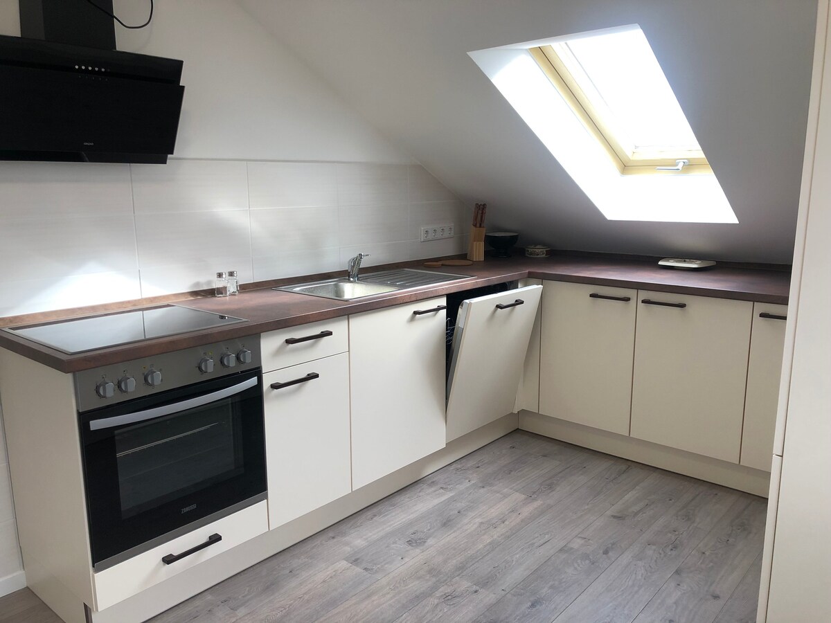 Bain sult as cónaí galánta inár n – árasán 70m2 geal fairsing – foirfe do suas le triúr aíonna! Le leaba earraigh bosca ardchaighdeáin le haghaidh oíche mhaith codlata agus tolg seomra suí teolaí (mar thríú leaba), cuireann sé spás ar fáil do lánúineacha, do theaghlach beag nó do chairde. Seomra folctha só: lig do scíth inár seomra folctha nua - aimseartha le cithfholcadán ardchaighdeáin. I gceann 15 nóiméad i gcarr nó ar bhus go lár Paderborn. Do theach sealadach, áit a mbuaileann compord le radhairc iontacha.
