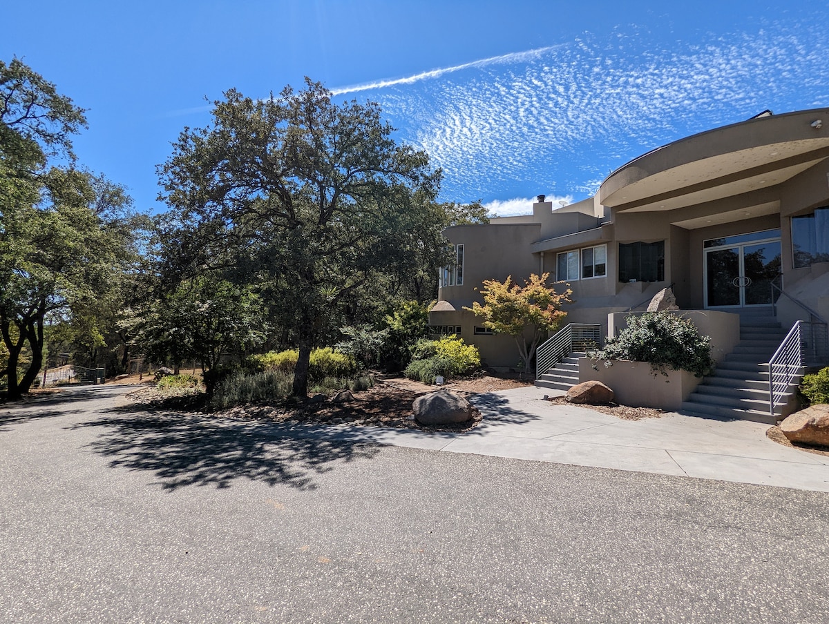 Eastát álainn iar-nua-aimseartha ar 15 acra suite i mBunchnoic Sierra díreach taobh amuigh de Ghleann na Féir. Lárnach do go leor nithe is díol spéise in Gold Country, 15 nóiméad go Grass Valley agus Nevada City, 30 nóiméad go Yuba City. Beidh úsáid eisiach ag aíonna as an réadmhaoin agus beidh rochtain acu ar leibhéal íochtarach an eastáit ina bhfuil dhá sheomra leapa mhóra, seomra folctha Jack agus Jill ina bhfuil cithfholcadán álainn cloiche agus tobán ollmhór. Tugann tolg leathair Iodálach cuireadh duit isteach sa seomra suí / sa chistin ina bhfuil na saoráidí go léir le haghaidh d'fhanachta.