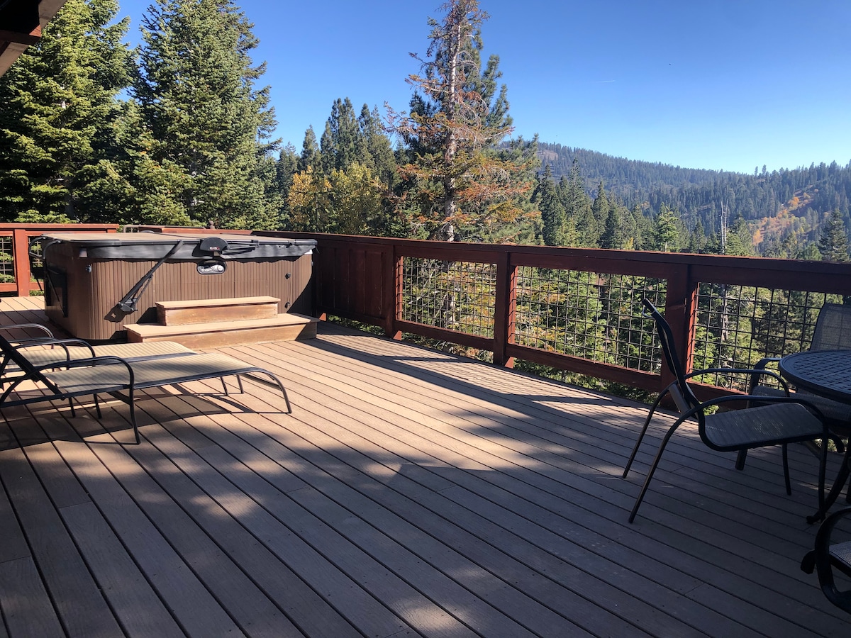 Tá gach compord sa bhaile ag fanacht leat sa tsaoire shléibhe fhíorscála seo atá neadaithe i bpéin Chruinniú Mullaigh Donner. Cistin nuashonraithe go gleoite, tobán te, teallach dóite adhmaid, agus deic mhór +bbq sa samhradh. Níl le déanamh ach céimeanna ó sciáil tíre X, scátáil oighir, sledding agus gar do 3 ionad sciála (Sugar Bowl), ní féidir an suíomh seo a shárú ar feadh saoire ghearr nó áit le hoibriú go cianda. Sa samhradh, is gearr go dtí an loch é le haghaidh seaschéaslóireachta agus snámh nó déan iniúchadh ar na cosáin, na lochanna agus na haibhneacha áitiúla.