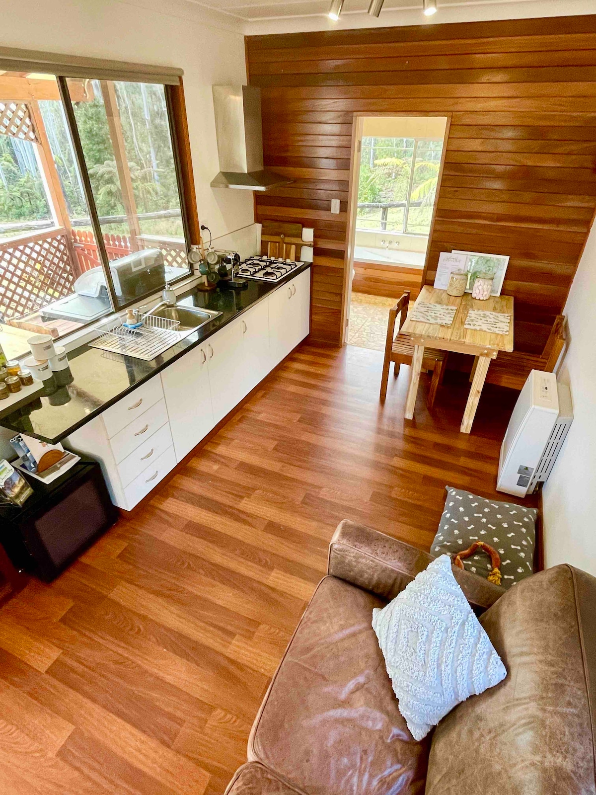 Níl an iomarca, níl sé róbheag Lig do scíth, déan athcheangal agus athmhúscailt. Le radhairc lánléargais amach chuig escarpment Dorrigo, is é seo an suíomh foirfe chun ócáidí speisialta a cheiliúradh, agus chun iad a chruthú. Timpeallaithe ag Foraois Stáit agus suaimhneas iomlán, cé nach bhfuil ach 10 nóiméad ó bhialanna/caiféanna, agus earraí grósaera, anseo músclóidh tú fuaim na n - éan, agus fíorbheagán eile, tá an tsíocháin thar barr. D'fhéadfadh Muirir THÁBHACHTACHA a bheith i bhfeidhm maidir le húsáid mhícheart Spa. Féach 'Rialacha Tí - Rialacha Breise'