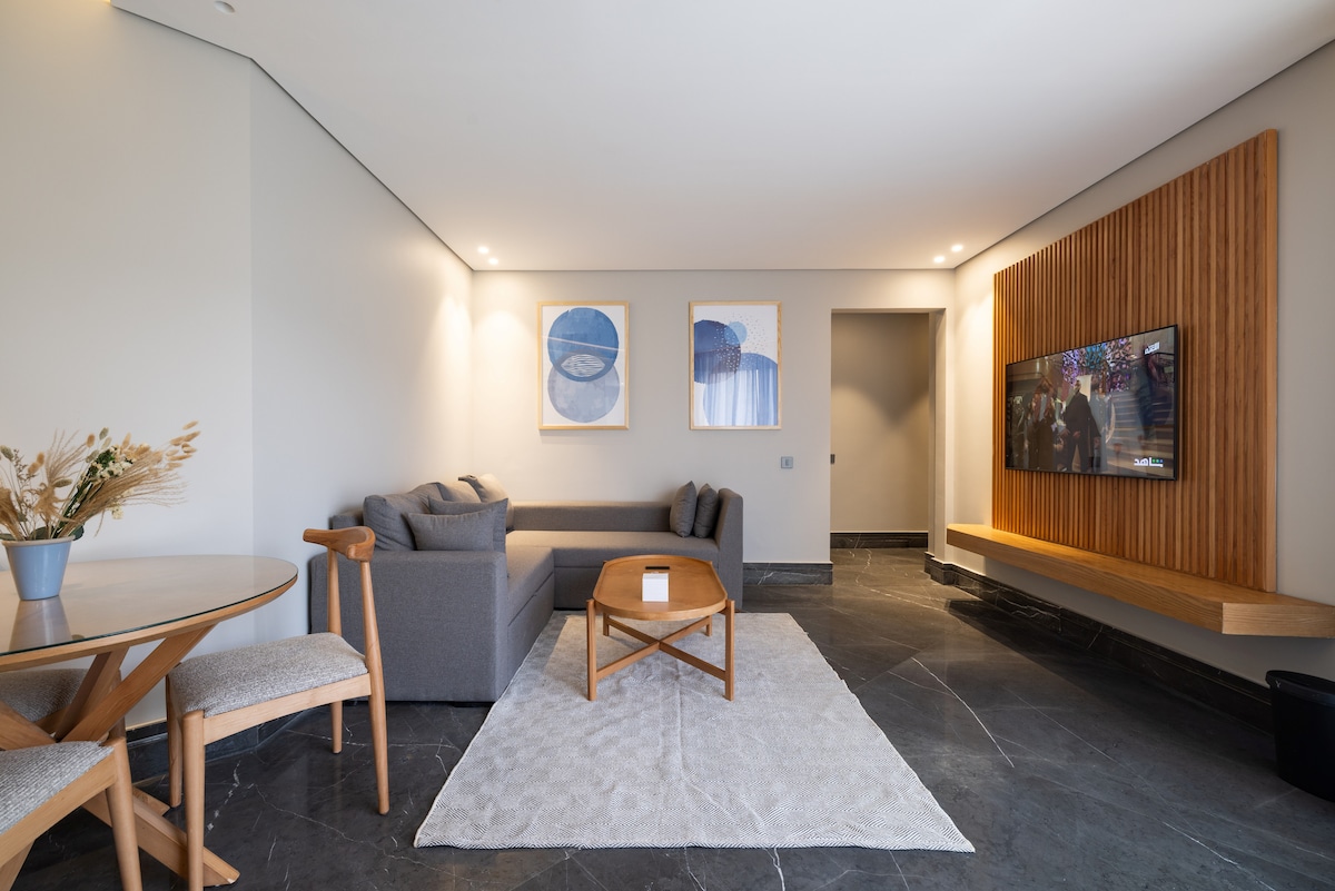 Svuít Galánta 1 Seomra Leapa | Bainistithe go hiomlán & D'oibrigh JW Marriott | Linn Snámha, Spórtlann, Spá & Tuilleadh! Téigh isteach i gcompord na sraithe galánta 1 sheomra leapa seo, atá á bainistiú agus á reáchtáil go bródúil ag JW Marriott, ag cinntiú go mbainfidh tú taitneamh as caighdeáin den chéad scoth i ngach mionsonra. Cibé acu an bhfuil tú ar cuairt le haghaidh gnó nó scíthe, cuireann an t - árasán préimhe seo agus a shaoráidí eisceachtúla eispéireas dochreidte ar fáil.