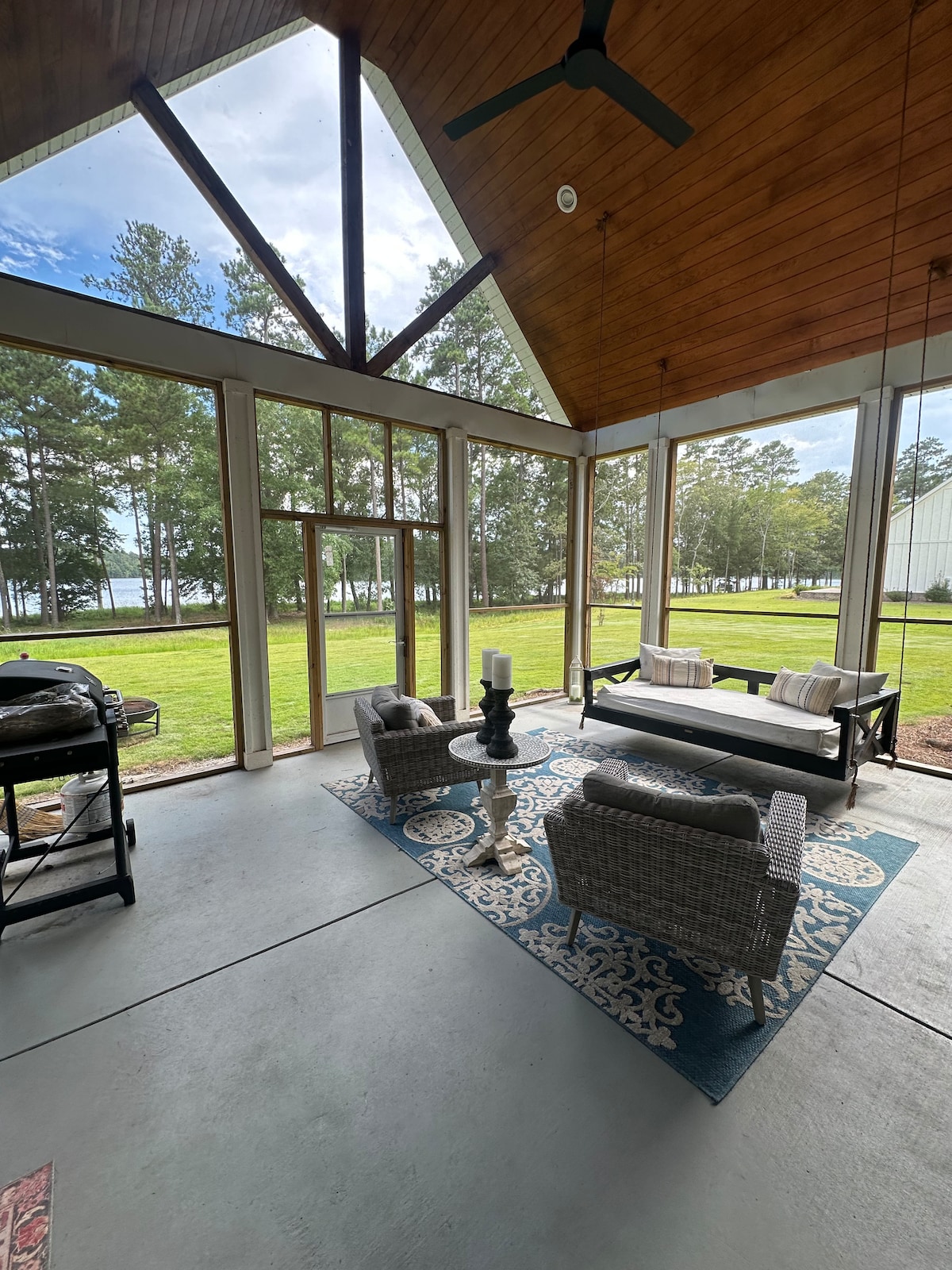 Tá ár n - áit neamhchosúil le háit ar bith eile ar an loch! Tá an teach stocáilte go hiomlán agus tá cadhcanna, bád cos agus ceap lilly ann chun taitneamh a bhaint as. Tá duga agus firepit againn. Ní bheidh ort dul áit ar bith eile agus tú anseo, mar tá an oiread sin rudaí le tairiscint ag Camp Q. Tá 2 ghreille agus cuisneoir sa chistin lasmuigh. Taitneoidh m'áit go mór leat mar gheall ar an spás lasmuigh, agus an t - atmaisféar. Tá m'áit go maith do lánúineacha, eachtránaithe aonair, teaghlaigh (le páistí), grúpaí móra, agus cairde clúmhacha (peataí).