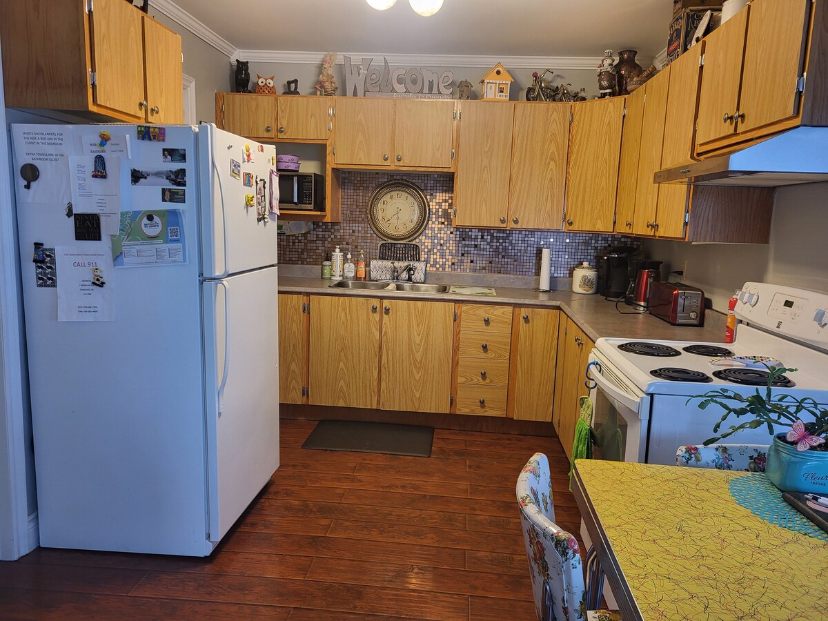 Fáilte chuig an seomra d'aíonna tiomnaithe 2 sheomra leapa seo i gcomharsanacht chiúin - bunáit iontach chun cuairt a thabhairt ar CBS nó ar mhórcheantar Naomh Eoin! Níl tú ach :* Siúlóid 1 nóiméad go dtí Líonra Conaire Abhainn Manuels *Laistigh de 3 nóiméad sa charr chuig CBS i lár na cathrach ina bhfuil saoráidí amhail Uachtar Reoite Berg, Ionad Ateangaireachta Abhainn Manuels, grúdlann ceardaíochta Ninepenny, Jungle Jim's, caife & slabhraí mearbhia, siopadóireacht, srl. * Tiomáint 15 nóiméad (agus gan ach 1 solas tráchta) go lár chathair Naomh Eoin * Tiomáint 20 nóiméad chuig Aerfort Intl Naomh Eoin