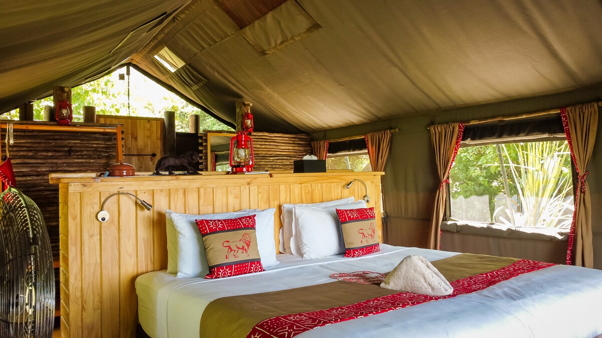 Uathúil agus suaimhneach, faoi scáth crann mór Jackalberry. Ag imeall ár murlaigh álainn Samochima, téann gaoth fhionnuar isteach trí fhuinneoga uige i gcónaí. San oíche d'fhéadfadh hippo a bheith ar féarach taobh amuigh agus ulchabhán Iascaireachta an Pel ag grunts cúpla clós ar shiúl. Tugann ábhair thógála orgánacha - cré, giolcacha agus canbhás, mothú safari ach le saoráidí breise féinfhreastail, leictreachais agus Wi - Fi. Fad siúil chuig roghanna siamsaíochta eile, m.sh. turais bháid, bialann agus beár, ar féidir iad a shocrú.
