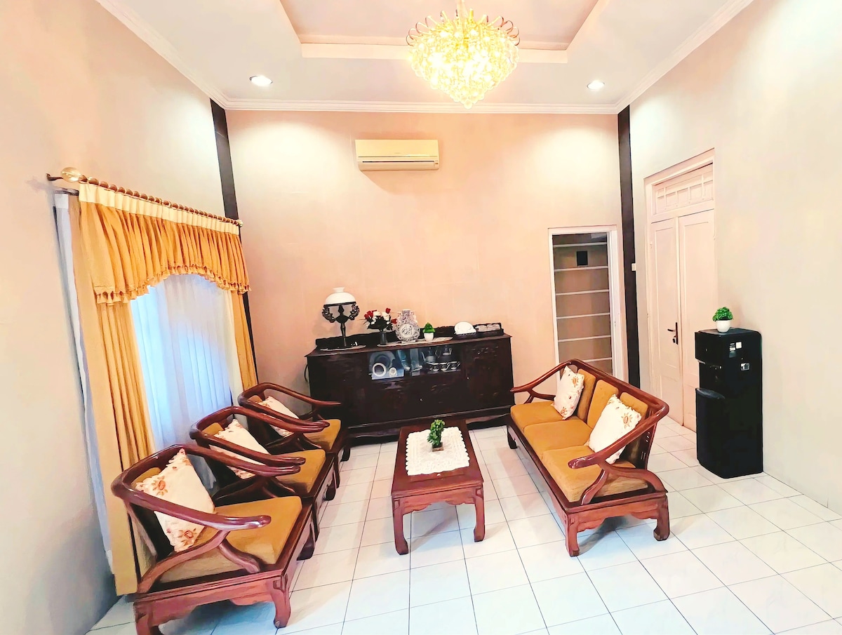 Teach iomlán ag an 2ú hurlár. Homey , glan agus fairsing. In aice le Pálás Yogyakarta (Keraton), Margadh Beringharjo, Bóthar Malioboro, Stáisiún Traenach Tugu. Laistigh de 5 nóiméad siúil ó Mhúsaem Náisiúnta Jogja, agus Músaem agus Gailearaí Ealaíne Amri. Seomraí suí agus seomraí codlata lán - aircond agus atá feistithe le rochtain neamhtheoranta 30 mbps ar an idirlíon, Netflix. Tá an 1ú hurlár ar cíos ar leithligh