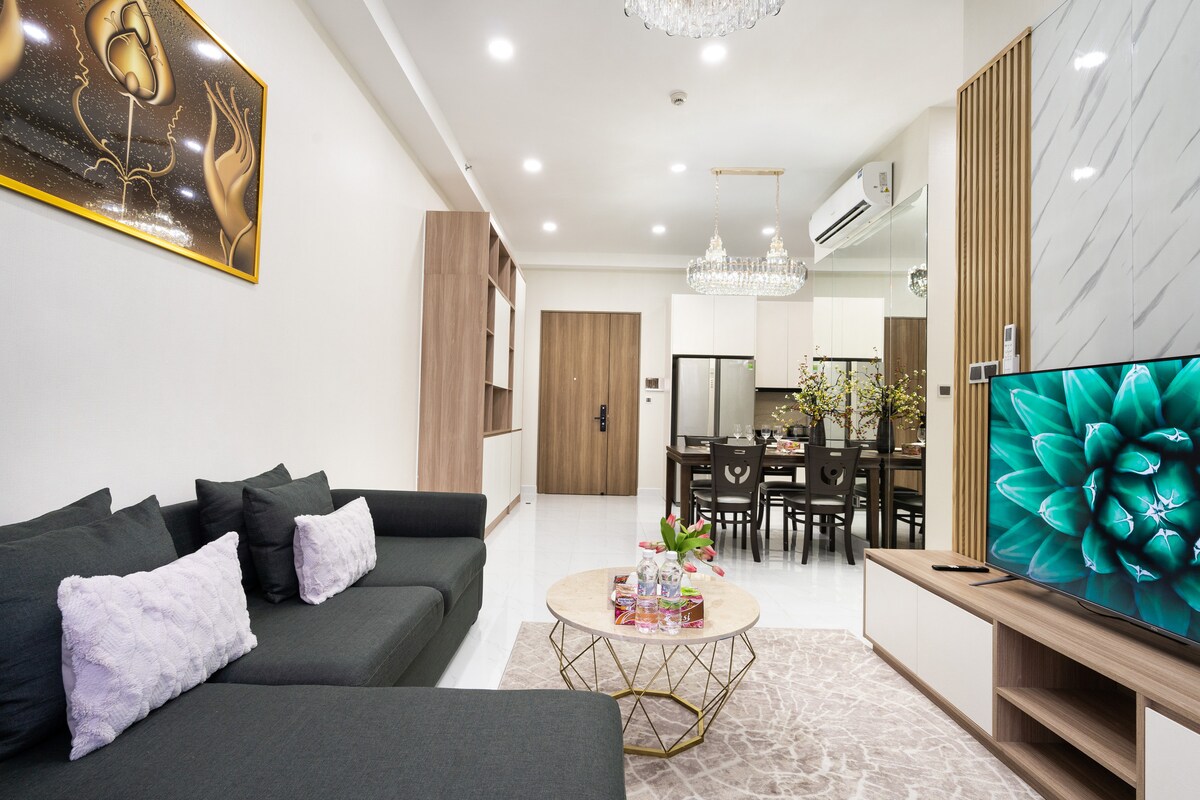 This is one of a kind apartment with full furniture can make you feel like at home, this is a very new decoration and the location is close to Phu My Hung area (new city) where you can enjoy a variety of cuisine, park and river activities. the amenities also provide you more healthy fitness such as gyms, swimming, playing basketball or jogging.