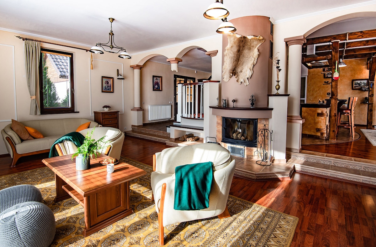 Árasán barántúil, galánta, fairsing (55m2) le síleálacha arda (3.70m), troscán seanda athchóirithe go hálainn, leaba rí - mhéid chompordach, troscán cistine saincheaptha le barr oibre marmair. A árasán fíor, ní óstán! Lonnaithe i dteach baile ón 19ú haois a bhfuil radharc uaidh i gcroílár Podgórze. 1 seomra leapa, seomra suí, WI - FI saor in aisce, teilifís satailíte cothrom 40", miasniteoir, cócaireán, oigheann, cuisneoir, iarann, meaisín níocháin, triomadóir gruaige. Fíor - theach ar shiúl ón mbaile! Taitneoidh sé go mór leat! Déanann ár n - aíonna!