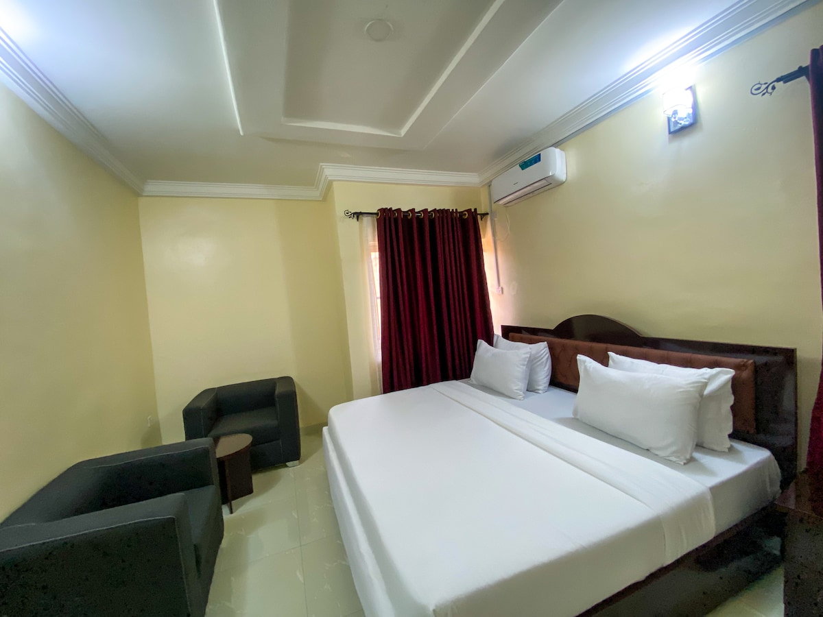 Seomra Cluthar Super Deluxe inár nÓstán i gCathair Portharcourt Bain sult as seomra fairsing aerchóirithe ina bhfuil leaba phluise, teilifíseán cliste, Wi - Fi agus seomra folctha en - suite. Cuir tús le do lá le bricfeasta dea - mhéine, lig do scíth ag an linn snámha, nó lig do scíth sa tolglann galánta. Bialann ar an láthair, cumhacht 24/7, tís laethúil, agus páirceáil saor in aisce san áireamh. Foirfe le haghaidh gnó nó fóillíochta. Compord, áisiúlacht agus fáilteachas ar fad in aon áit amháin!
