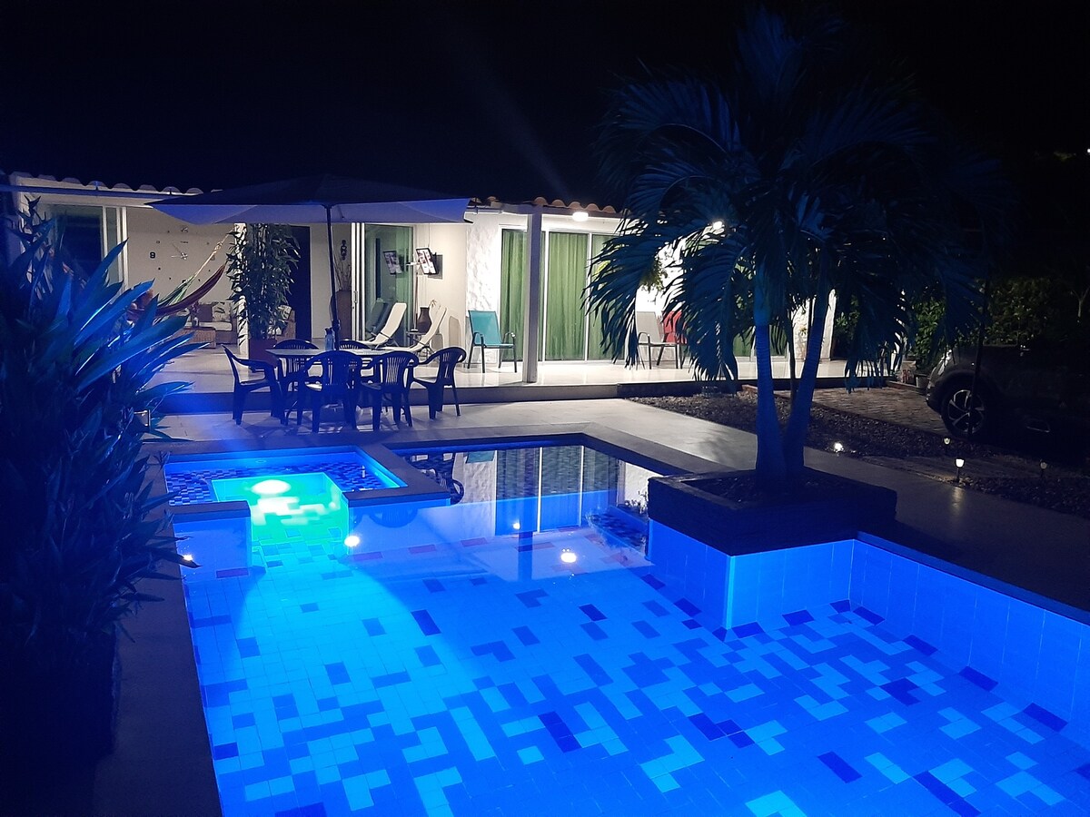 Teachín teaghlaigh i bpobal geataithe 25 nóiméad i gcarr ó Melgar agus 30 ó Girardot. Tá linn snámha, tobán cuilithe, beárbaiciú, agus atmaisféar ciúin ann chun fanacht pléisiúrtha a bheith agat. Is féidir linn uimhir fóin póca bean iontaofa a sholáthar a d'fhéadfadh cabhrú leat ar na laethanta sin (níl sé san áireamh sa ráta)