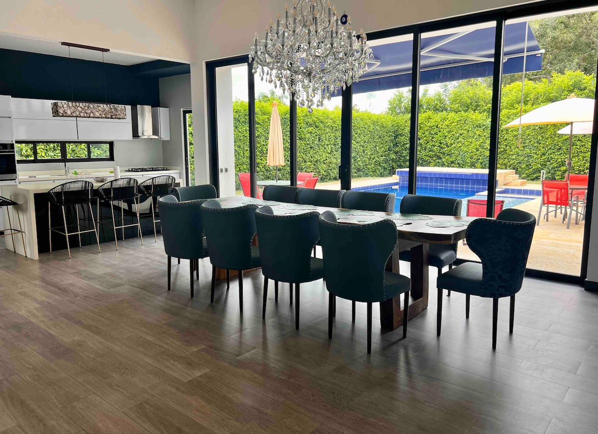 Teach álainn le linn snámha phríobháideach in aeráid the agus timpeallaithe ag an dúlra. Níl ach 2.5 uair an chloig ó Bogotá. Is féidir leis freastal ar 15 dhuine. 3 sheomra atá feistithe le tacair leapa, 3 sheomra folctha, seomra suí le leaba thoilg, cistin atá lánfheistithe, cistin lárnach, cuisneoir, teilifís chábla, gríoscán Tá an limistéar pisicin feistithe le luí na gréine, cathaoir luascáin, bosa scátha, agus linn snámha mhór 6 x 10 thar a bheith te agus teaghlaigh. Carrfort 5 charr Spás campála